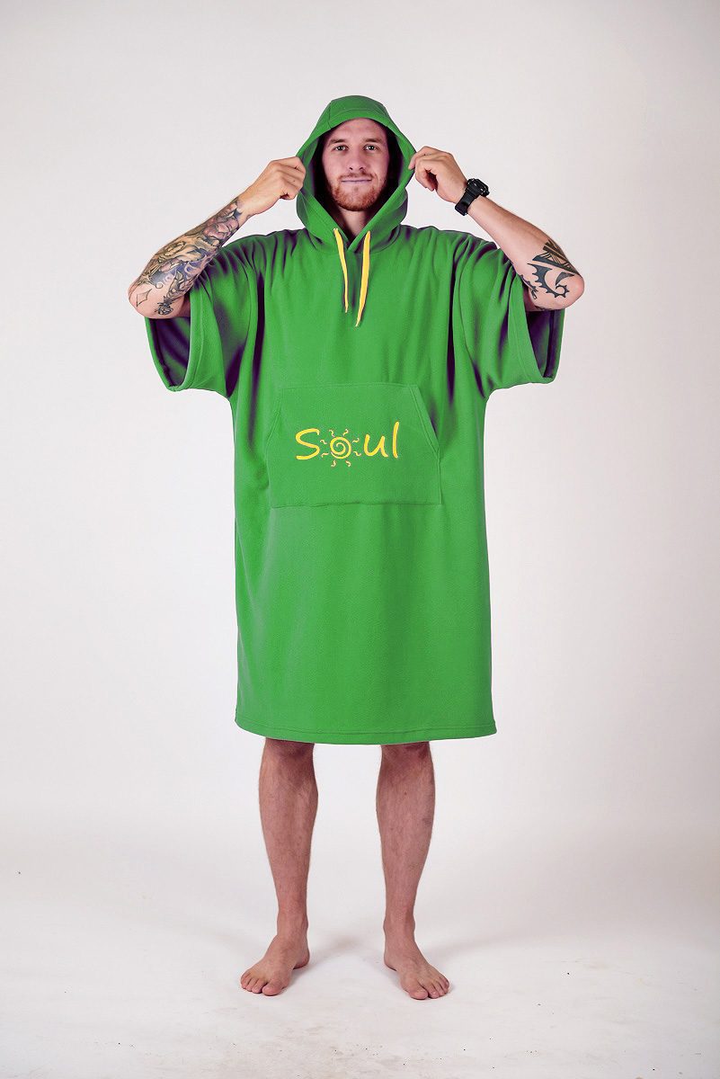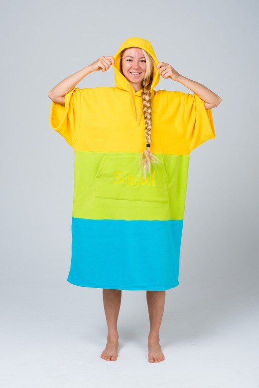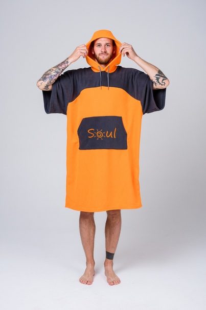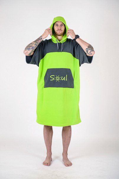 Яркие пончо для активных людей!Если вы занимаетесь водными видами спорта: кайтинг, серфинг, вейкборд, вейк-серф, то вам просто не обойтись без пончо-полотенца!* Вышли из воды, а на берегу дует ветер, и совсем негде переодеться? Есть пончо!* Ждете своей очереди на каталку, а в мокром гидрике некомфортно? Есть пончо!* Продувает уши и вы начали замерзать? Есть пончо!* Хочется выглядеть стильно на пляже, пока друзья катаются? Есть пончо!* Для согрева, переодевания, и просто тусовки — захватите с собой пончо! Размер один, унисекс.В комплекте с пончо идет удобный чехол. Состав: плотный флис 300гр/м2 Размеры: Ширина — 75 см (сложенное пополам) Длина — 107 см