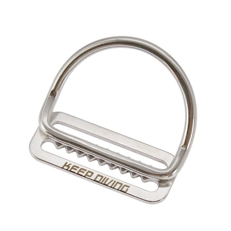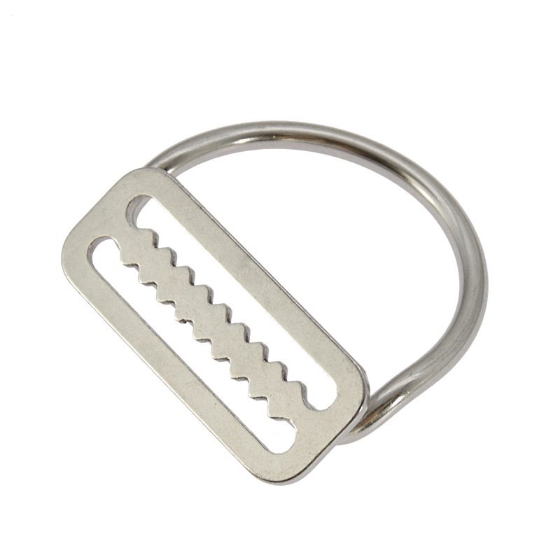 Пряжка с зубьями из нержавеющей стали с D-кольцом изогнутая. Подходят для любых строп и ремней. Длина пряжки 5см.