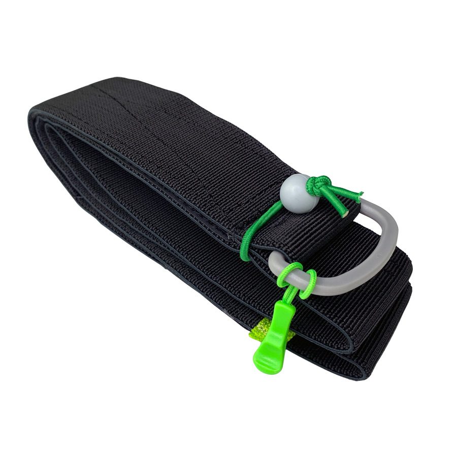 Эластичный пояс фридайвера и подводного охотника. Как и все другие грузовые ремни, он предназначен для размещения на поясе ныряльщика и удержания свинцовых грузов для компенсации положительной плавучести вызванной использованием неопренового гидрокостюма. Но особенность этого ремня – в использованных материалах для ленты, которая сочетает в себе достоинства обоих ранее используемых в чистом виде материалов – нейлона и резины и при этом лишена большинства недостатков каждого из них. Лента этого пояса эластична как резина, что обеспечивает автоматическую компенсацию обжима гидрокостюма по мере увеличения глубины. При этом вес и размеры ремня не превышают лучшие образцы нейлоновых ремней. Кроме высокой прочности этого грузового ремня, в отличие от моделей выполненных из резины, ему не страшны мелкие зацепки и незначительные порезы.При изготовлении этих поясов была использована особая velcro (липучка), которая не цепляется за одежду и ткань гидрокостюма, но при этом весьма крепко фиксирует и долговечна при аккуратном использовании. Пояс плотно и полностью прилегает к телу пловца, свободный конец отсутствует, поэтому теперь ничего не свисает и не даёт сопротивления при скольжении в воде, при этом сохраняется возможность аварийного сброса одним рывком за полукольцо, даже при использовании страховочной резинки.Многие фридайверы также ценят полное отсутствие металлических деталей в конструкции этого грузового ремня. То есть при надевании и использовании этого грузового ремня больше никакого холодного металлического лязганья и дребезга, а только тишина и спокойствие…Благодаря уникальному плетению ленты грузового обеспечена максимально плотная, но комфортная посадка ремня на пояс пловца, а материал ремня не испортит костюм и не будет скользить по нему, всегда оставаясь на своём месте (при весе грузов на поясе до 10кг, равномерно распределённых по окружности).