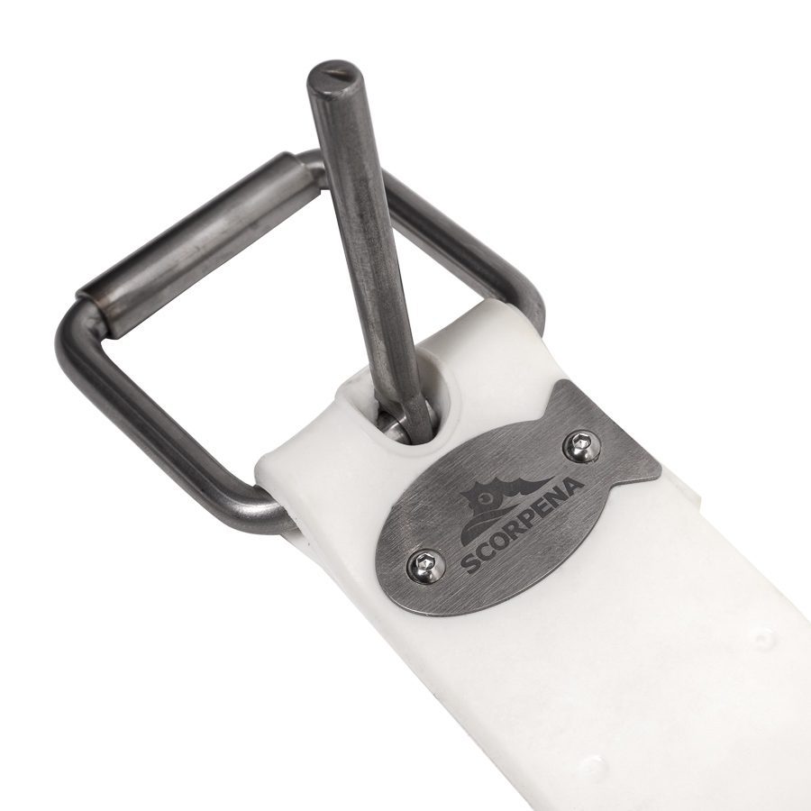 Ремень настраиваемый Scorpena Apnea для подводной охоты и фридайвинга. По праву занимает лидирующие место среди всех ремней этого направления. Благодаря совмещённым уникальным свойствам. А именно: 1. Безопасная пряжка марсельского типа, из нержавеющей стали. 2. Эластичный и в то же время прочный материал (химически стойкий полиуретан) обладающий противоскользящим эффектом, который предотвращает перемещение свинцовых грузов по поясу и движение всего ремня по телу пловца в момент нырка и всплытия. 3. Материал ремня обладает повышенной стойкостью к перепадам температуры окружающей среды в диапазоне от +40 до — 25 градусов Цельсия. 4. Все отверстия усиленный эластичными люверсами из того же материала. Что в свою очередь продлевает срок службы изделия. 5. И самое главное, возможность отрегулировать и подогнать размер под свою фигуру.Таким образом мы получаем эластичный ремень который не будет давить на диафрагму давая возможность комфортно дышать и задерживать дыхание. При этом не будет скользить по вам вниз, вверх. С уникальной возможностью подгона под себя.