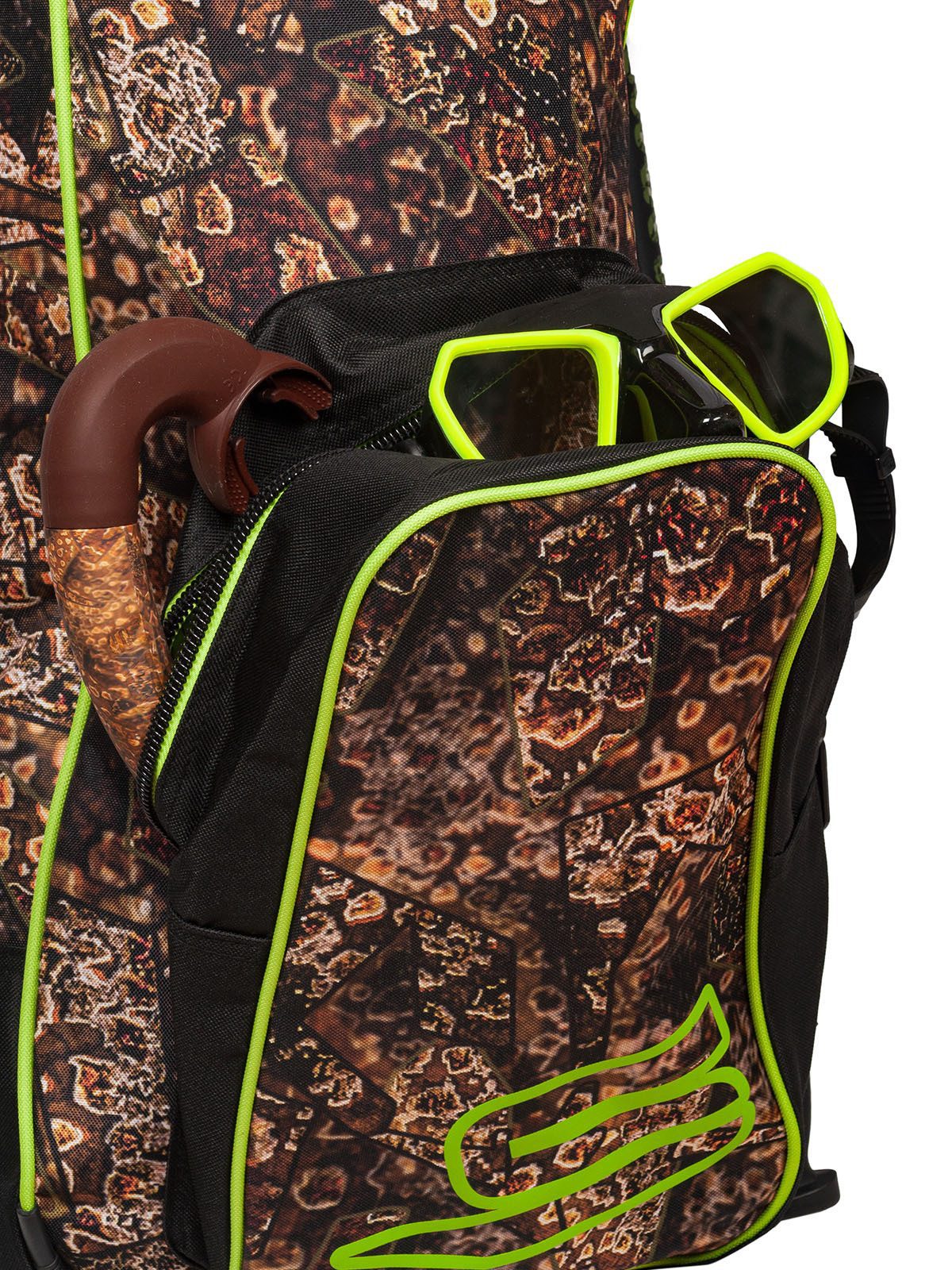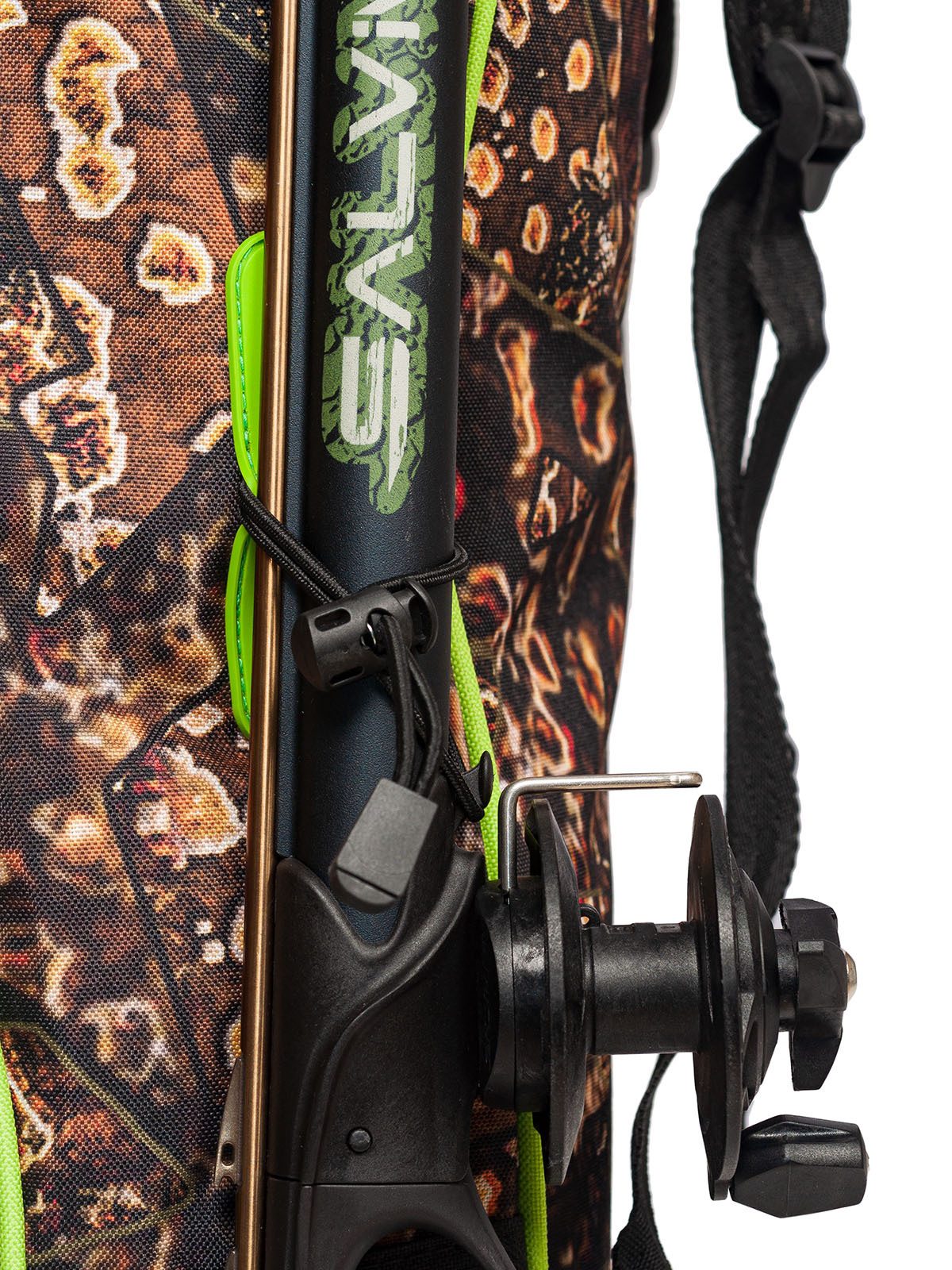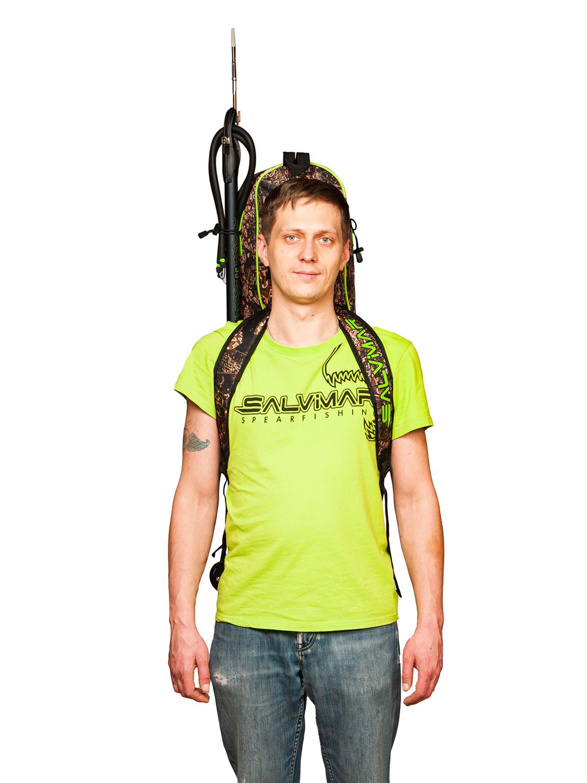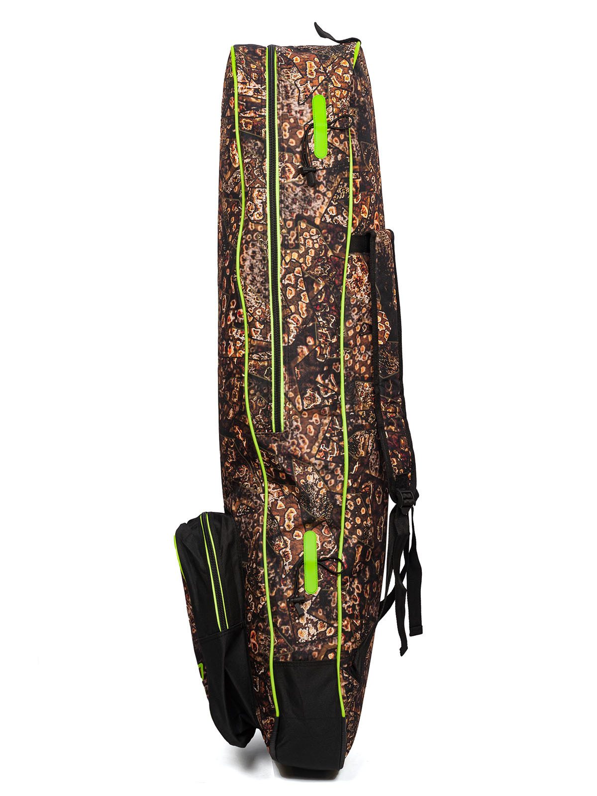 Сумка-рюкзак для комплекта снаряжения Salvimar Krypsis – очень удобна для тех подводных охотников, которые охотятся в местах, где нет возможности близко подъехать к Воде на машине. Ну, и для тех, кто ездит на подводную охоту на мотоцикле, тоже отличная вещь.Сумка вмещает в себя полноценные охотничьи ласты длиной до 110 см. И весь остальной комплект снаряжения с гидрокостюмом толщиной не более 5-и мм. Более толстые костюмы уже скорее не помстятся в нее.Также сумка-рюкзак Salvimar Krypsis оснащена креплением для подводного ружья сбоку. Вы можете прикрепить туда любое ружье длиной от 65. Более короткие ружье можно просто положить внутрь.Есть удобный карман для аксессуаров. Туда спокойно поместится маска с трубкой, фонарь кукан и еще куча других мелких аксессуаров .Лямки рюкзака сделаны из прочной ткани с мягкой подкладкой, которая защитит Ваши плечи от натирания и сделает достаточно комфортным ношение рюкзака даже с большим весом.Еще сумка-рюкзак Salvimar Krypsis оснащена двумя пластиковыми усилителями на дне. Они увеличивают срок службы и делают дно сумки существенно прочнее.Изготовлена из прочного водонепроницаемого нейлона. Можно не переживать за мокрое снаряжение после ныряния.Ну, и конечно сумка выполнена в фирменном стиле Salvimar Krypsis. А этот камуфляж уже стал визитной карточкой бренда Salvimar да и подводной охоты в целом.Габаритный размер: 115х30х20 см.Вес: 1,4 кг.