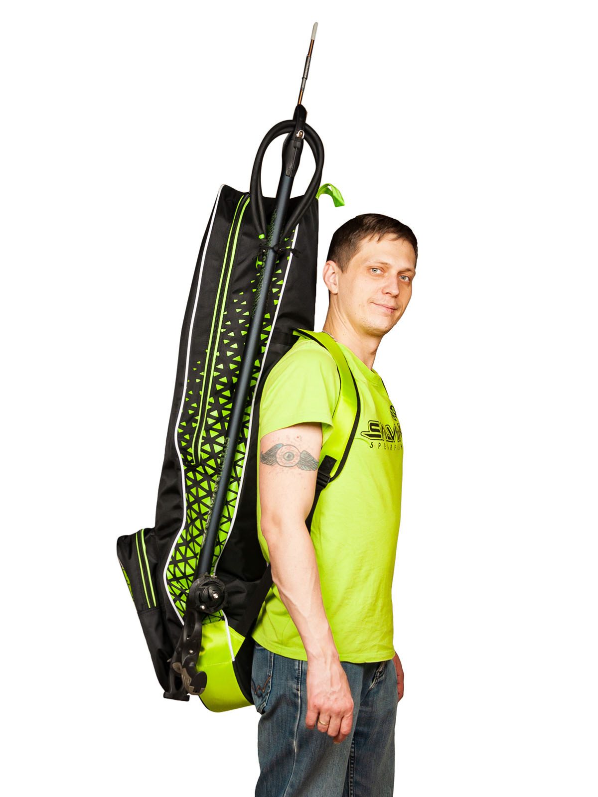 Сумка-рюкзак для комплекта снаряжения Salvimar Kryptonite – очень удобна для тех подводных охотников, которые охотятся в местах, где нет возможности близко подъехать к Воде на машине. Ну, и для тех, кто ездит на подводную охоту на мотоцикле, тоже отличная вещь.Сумка вмещает в себя полноценные охотничьи ласты длиной до 110 см. И весь остальной комплект снаряжения с гидрокостюмом толщиной не более 5-и мм. Более толстые костюмы уже скорее не помстятся в нее.Также сумка-рюкзак Salvimar Kryptonite оснащена креплением для подводного ружья сбоку. Вы можете прикрепить туда любое ружье длиной от 65. Более короткие ружье можно просто положить внутрь.Есть удобный карман для аксессуаров. Туда спокойно поместится маска с трубкой, фонарь кукан и еще куча других мелких аксессуаров .Лямки рюкзака сделаны из прочной ткани с мягкой подкладкой, которая защитит Ваши плечи от натирания и сделает достаточно комфортным ношение рюкзака даже с большим весом.Еще сумка-рюкзак Salvimar Kryptonite оснащена двумя пластиковыми усилителями на дне. Они увеличивают срок службы и делают дно сумки существенно прочнее.Изготовлена из прочного водонепроницаемого нейлона. Можно не переживать за мокрое снаряжение после ныряния.Ну, и конечно сумка выполнена в фирменном стиле Salvimar Kryptonite.Габаритный размер: 115х30х20 см.Вес: 1,4 кг.