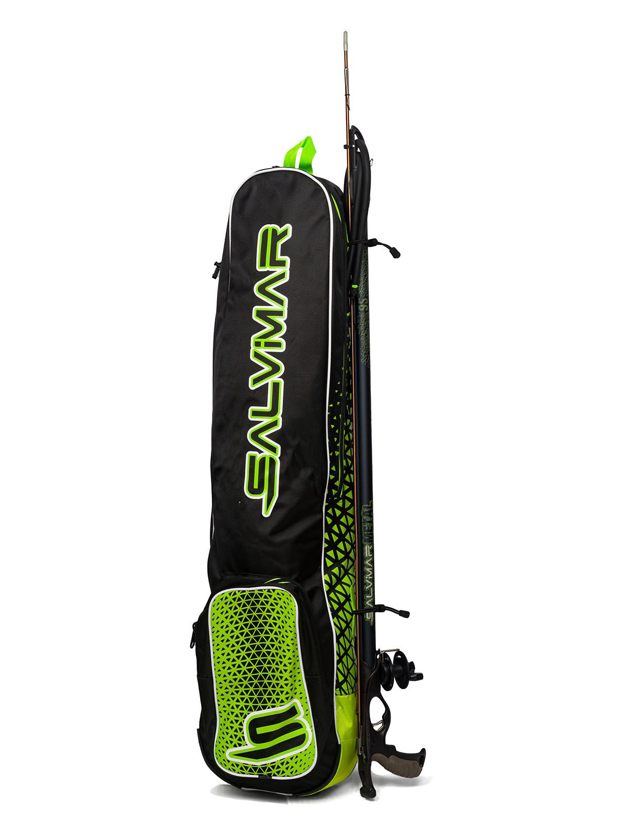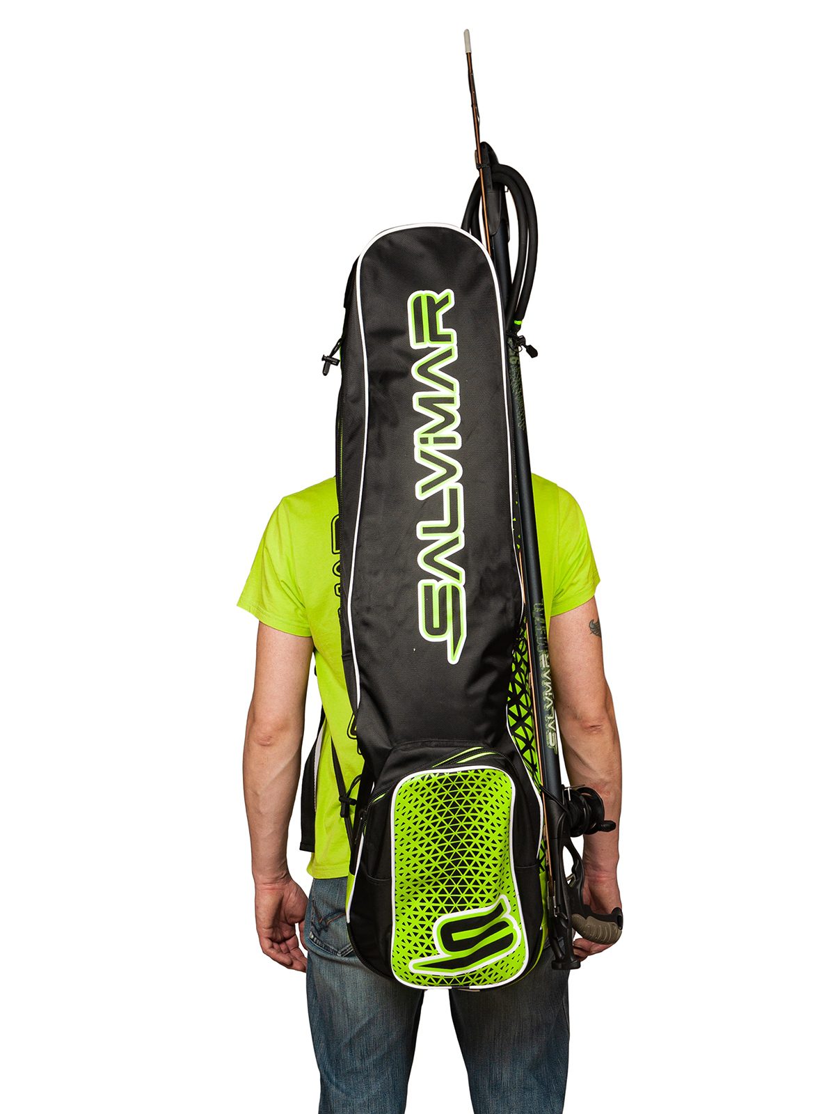 Изготовлена из прочного водонепроницаемого нейлона. Можно не переживать за мокрое снаряжение после ныряния. Ну, и конечно сумка выполнена в фирменном стиле Salvimar Kryptonite. Габаритный размер: 115х30х20 см. Вес: 1,4 кг.
