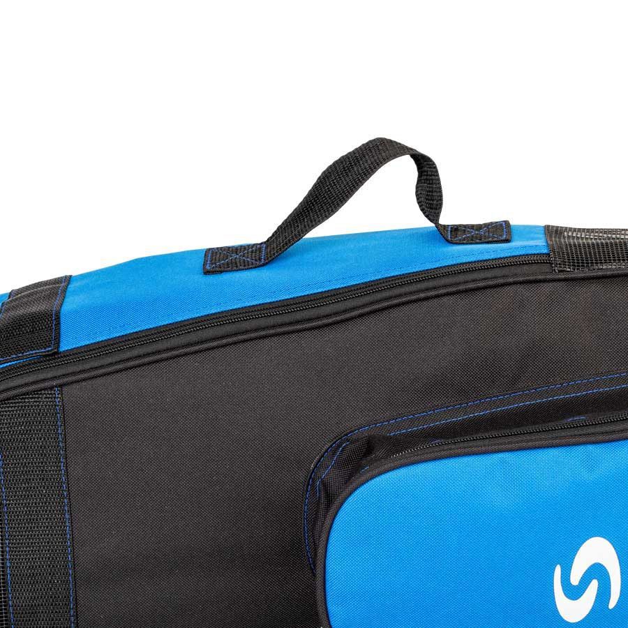 Как следует из названия, его предназначение – с удобством и комфортом перенести комплект для плавания до места отдыха на пляже и обратно. В основное объёмное отделение сумки кроме ласт можно также поместить купальник, тонкую неопреновую жилетку и шорты или даже пляжное полотенце.Снаружи сумки имеется карман, с длинной дугообразной молнией, для размещения маски с трубкой или плавательных очков, документов и небольшого аксессуара типа солнцезащитных очков, защитного крема, небольшой бутылки воды, бумажника, ключей, мобильного телефона, влажных салфеток, антисептика и т.п.Дренажное отверстие в донной части основного отделения сумки обеспечивает слив воды с мокрого снаряжения. Четыре сетчатые вставки — на фронтальной, нижней и верхней, а также на боковых стенках рюкзачка позволяют активно проветриваться содержимому, чтобы по приходу домой (или в номер гостиницы/дома отдыха) всё содержимое было уже почти сухим.Сумка имеет молнию с двумя бегунками на центральном отделении, что позволяет застёгивать и расстёгивать молнию в любом направлении. U-образное расположение этой молнии делает возможным почти полностью раскрыть сумку (как чемодан), открыв удобный доступ для извлечения и укладки содержимого внутрь основного отделения.На задней части сумки расположены мягкие и широкие плечевые лямки с регулировкой по длине, что позволяет комфортно носить сумку как рюкзак на спине или просто через одно плечо.Для кратковременной переноски поклажи в руке, к боковой поверхности рюкзачка пришита мягкая ручка.
