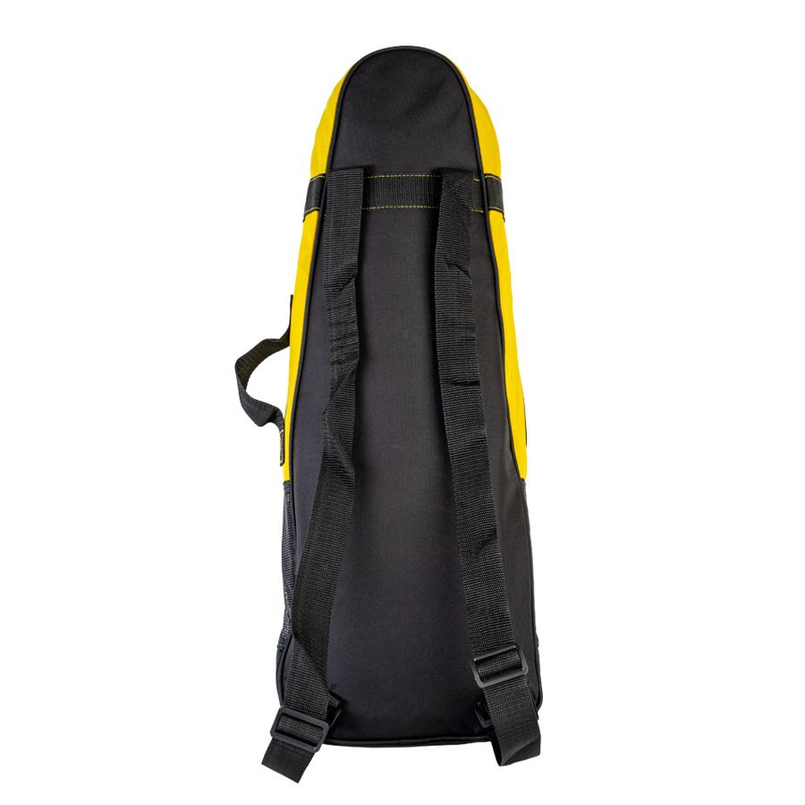 Как следует из названия, его предназначение – с удобством и комфортом перенести комплект для плавания до места отдыха на пляже и обратно. В основное объёмное отделение сумки кроме ласт можно также поместить купальник, тонкую неопреновую жилетку и шорты или даже пляжное полотенце.Снаружи сумки имеется карман, с длинной дугообразной молнией, для размещения маски с трубкой или плавательных очков, документов и небольшого аксессуара типа солнцезащитных очков, защитного крема, небольшой бутылки воды, бумажника, ключей, мобильного телефона, влажных салфеток, антисептика и т.п.Дренажное отверстие в донной части основного отделения сумки обеспечивает слив воды с мокрого снаряжения. Четыре сетчатые вставки — на фронтальной, нижней и верхней, а также на боковых стенках рюкзачка позволяют активно проветриваться содержимому, чтобы по приходу домой (или в номер гостиницы/дома отдыха) всё содержимое было уже почти сухим.Сумка имеет молнию с двумя бегунками на центральном отделении, что позволяет застёгивать и расстёгивать молнию в любом направлении. U-образное расположение этой молнии делает возможным почти полностью раскрыть сумку (как чемодан), открыв удобный доступ для извлечения и укладки содержимого внутрь основного отделения.На задней части сумки расположены мягкие и широкие плечевые лямки с регулировкой по длине, что позволяет комфортно носить сумку как рюкзак на спине или просто через одно плечо.Для кратковременной переноски поклажи в руке, к боковой поверхности рюкзачка пришита мягкая ручка.