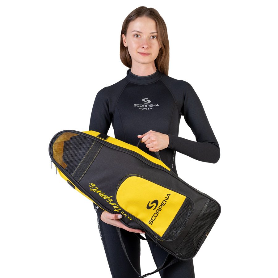 к следует из названия, его предназначение – с удобством и комфортом перенести комплект для плавания до места отдыха на пляже и обратно. В основное объёмное отделение сумки кроме ласт можно также поместить купальник, тонкую неопреновую жилетку и шорты или даже пляжное полотенце. Снаружи сумки имеется карман, с длинной дугообразной молнией, для размещения маски с трубкой или плавательных очков, документов и небольшого аксессуара типа солнцезащитных очков, защитного крема, небольшой бутылки воды, бумажника, ключей, мобильного телефона, влажных салфеток, антисептика и т.п. Дренажное отверстие в донной части основного отделения сумки обеспечивает слив воды с мокрого снаряжения. Четыре сетчатые вставки — на фронтальной, нижней и верхней, а также на боковых стенках рюкзачка позволяют активно проветриваться содержимому, чтобы по приходу домой (или в номер гостиницы/дома отдыха) всё содержимое было уже почти сухим.