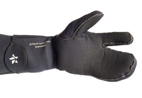 Рукавицы трехпалые с двойной обтюрацией. Оригинальный анатомический крой по форме расслабленной кисти руки позволяет избежать излишних усилий при удержании рукоятки ружья и существенно увеличивает длительность и комфорт пребывания в холодной воде.