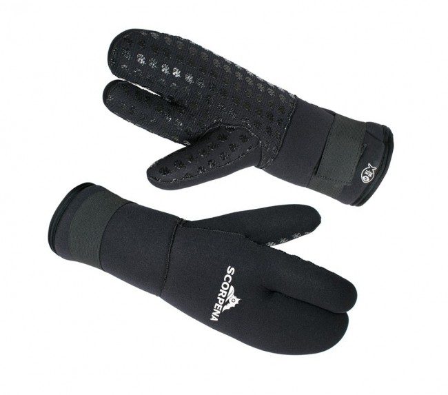 Трехпалые рукавицы из 8 мм неопрена сделаны специально для использования в особо холодной воде. Имеют анатомический крой в форме расслабленной кисти руки. Ладони рукавиц покрыты износоустойчивым слоем Supratex. Для улучшения хвата и придания антифрикционых свойств ладони и пальцы снабжены оригинальным полиуретановым рисунком. Удлиненные краги сочетают в себе удобство при надевании, дополнительную теплоизоляцию и защиту от циркулирования воды внутри костюма во время охоты. Запястья рукавиц оснащены дополнительной фиксацией застежкой-липучкой снаружи.
