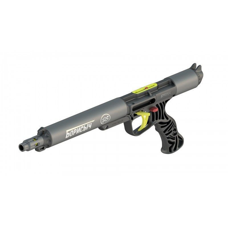Ружье «»Борисыч»» 450х59 Дальность поражения с наконечником «»пуля»» до 3 метров при давлении в ружье 20 атм. Отличается высокой точностью выстрела. Рабочий ход поршня 365 мм. Внутренний диаметр ствола 12 мм. Диаметр гарпуна 8 мм. После выстрела имеет отрицательную плавучесть.