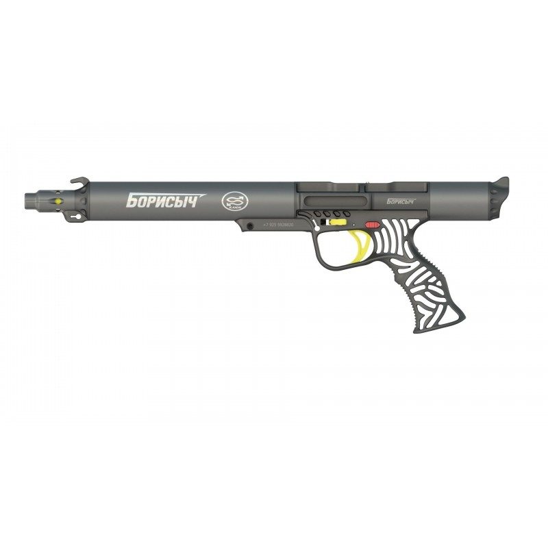 Ружье «»Борисыч»» 450х59 Дальность поражения с наконечником «»пуля»» до 3 метров при давлении в ружье 20 атм. Отличается высокой точностью выстрела. Рабочий ход поршня 365 мм. Внутренний диаметр ствола 13 мм. Диаметр гарпуна 8 мм. После выстрела имеет отрицательную плавучесть.