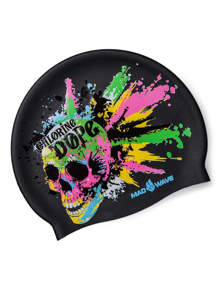 Силиконовая шапочка CHLORINE DOPE классической формы с оригинальным дизайном — аксессуар для крутых пловцов!