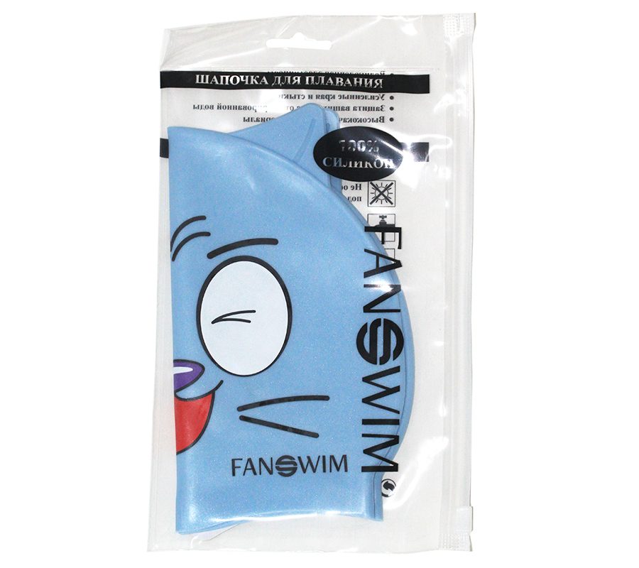 Детские шапочки Fanswim с оригинальным дизайном выполнены из высококачественного силикона, устойчивого к воздействию хлорированной воды в бассейне. Шапочка надежно держится на голове и не сползает на глаза благодаря мягкой рельефной поверхности внутренней стороны. Эта модель обладает идеальной посадкой и очень комфортна. Принт и сама форма шапочек для плавания в виде рыбок, котика и леопарда не оставит детей равнодушными к столь важному аксессуару. С такой шапочкой плавание в бассейне будет еще увлекательнее! Легко надевается, не цепляясь (не повреждая волосы). Максимальная эластичность. Гипоаллергенный силикон. Устойчивость к воздействию хлорированной воды. Дизайн с актуальным детским принтом. Рекомендации по уходу:После тренировки прополоскать шапочку в холодной проточной воде.Не рекомендуется оставлять мокрую шапку в закрытой сумке надолго.Избегать попадания прямых солнечных лучей.Характеристики:Материал: 100% силиконРазмер: 180 х 210 ммВес: 50 грОбхват головы: 45-49 смПроизводство: КитайТип упаковки: пакет с замком Zip-Lock