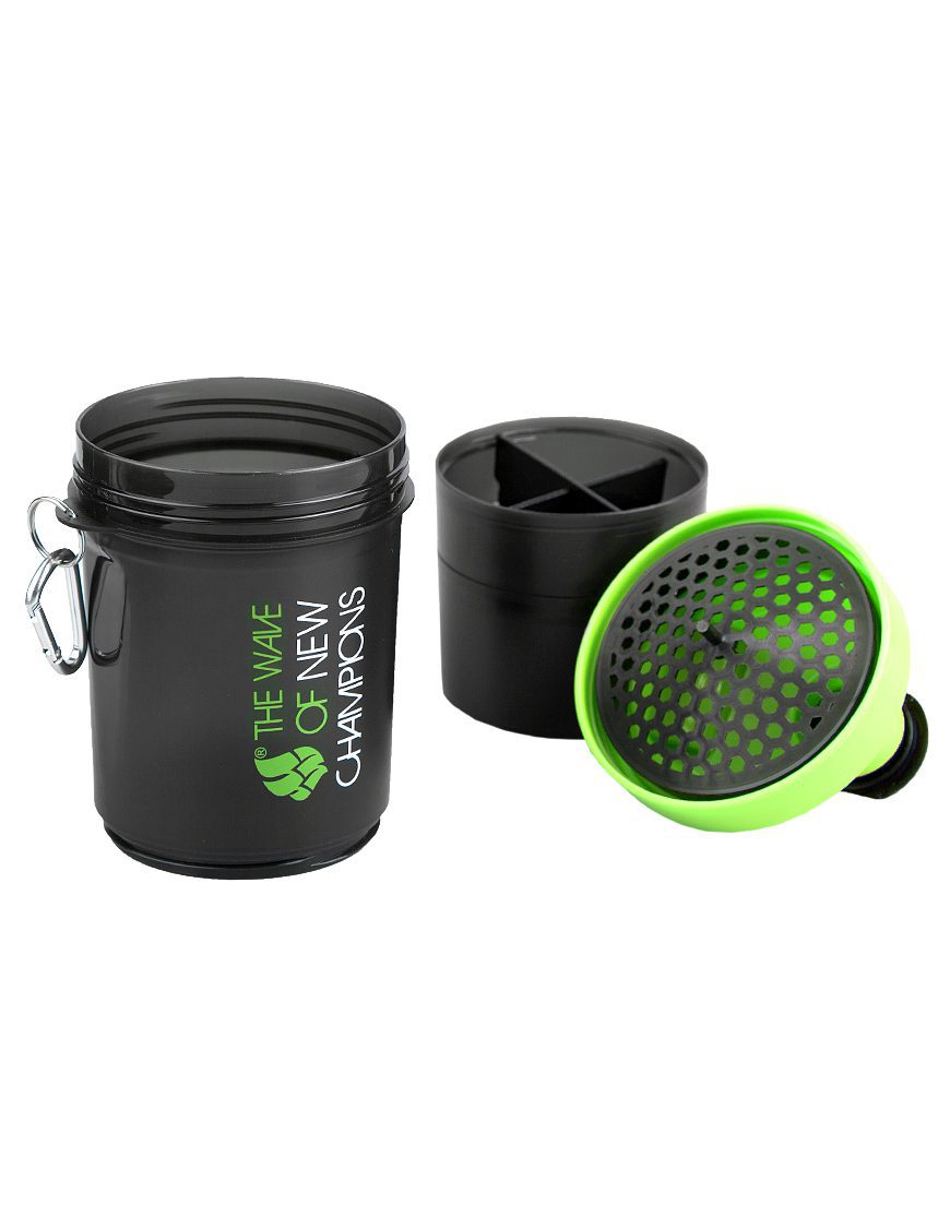 С новым шейкером от компании Mad Wave спортсменам и пловцам стало проще держать при себе и смешивать все необходимые добавки для протеиновых коктейлей, белковых смесей или гейнеров! Для большего удобства у Mad Wave SHAKER имеется три независимых друг от друга контейнера: основная емкость на 400 мл предназначена для приготовления и транспортировки готового разведенного коктейля или простой воды, а два маленьких контейнера, привинчивающихся к основанию первого, идеально подходят для хранения еще одной порции любого продукта в порошковой форме и/или таблеток с капсулами. Также при разработке шейкера использовался исключительно экологически чистый пластик, не имеющий специфического запаха и не изменяющий вкус хранящихся в шейкере продуктов. Герметичная конструкция полностью исключает любое возможное протекание и наполненный коктейлями и смесями шейкер смело можно положить в сумку или рюкзак для тренировок!