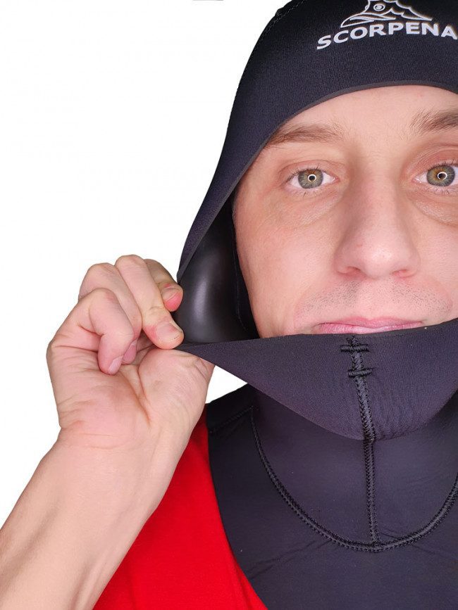 Шлем Scorpena предназначен для защиты головы и шеи от переохлаждения при совместном использовании с гидрокостюмами, которые не имеют своего встроенного шлема. Кроме основной, он имеет дополнительные, но не менее важные функции: предохраняет волосы от выдирания и повреждения силиконовым ремешком маски при её надевании/снимании, а также он выступает средством защиты головы и шеи от незначительных механических воздействий.Шлем Scorpena изготовлен по оригинальным анатомическим лекалам из мягкого и эластичного неопрена и лишен грубых швов на внутренней поверхности – для предотвращения пережимания и натирания чувствительных мест лица и шеи. Широкая лицевая манжета имеет гладкую внутреннюю поверхность по всей окружности – для мягкого, но плотного прилегания к лицу и предотвращения проникновения воды к голове и шее. Снизу шлем переходит в широкую манишку, которая благодаря своим размерам, а также внутренней гладкой поверхности smoothskin отлично прилегает к верхней части торса и предотвращает затекание воды к шее снизу.Шлем Scorpena выпускается в нескольких вариантах толщин: 3, 5 или 7мм и размерами от S до XXL