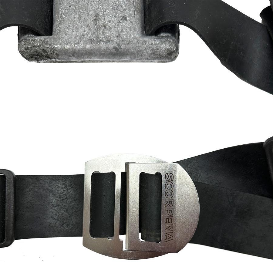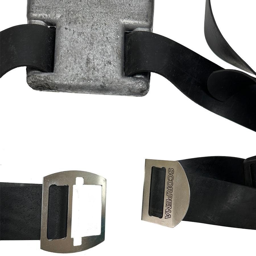 Прочные и обладающие необходимой эластичностью резиновые ремни с пряжками делают возможной максимально точную подгонку грузовой системы под параметры тела охотника. Рекомендуется для использования с костюмами толщиной 7 мм и более, в сочетании с грузовым ремнем.
