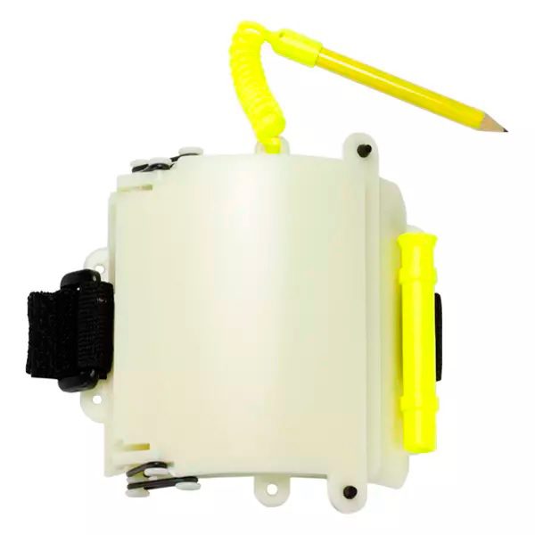 Слейт наручный ws-300 для дайвинга Aquatec Многостраничный наручный планшет для записей. Имеет изогнутую форму для удобного расположения на вашем запястье. Оснащен ремешком на липучке для крепления на запястье, карандашом на спиральном креплении, и фиксатором карандаша, когда он не используется.