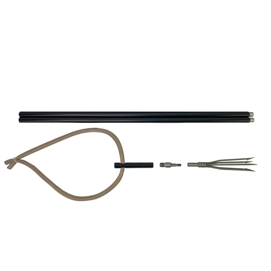Самые простые подводные ружья, но и вместе с тем, самые спортивные — это слинги, или как еще их назвывают, гавайка, или даже острога. Охота со слингом отлично подойдет для начинающих подводных охотников, женщин и подростков, а также для охоты в специфических условиях. Алюминиевый слинг SCORPENA разборный, состоит из нескольких частей. К одному концу прикручен переходник и наконечник — пятизубец, на другом конце прикреплён резиновый эластичный шнур. Для того чтобы ввести слинг в боевое положение нужно натянуть рукой петлю резинового шнура вдоль слинга по направлению к наконечнику примерно на половину или на всю длину гавайки, в зависимости от того какой мощности необходим выстрел, и удерживать его рукой в таком взведённом состоянии. При приближении жертвы — рука разжимается и резиновая тяга, сжимаясь, толкает острогу с заострённым наконечником вперед. В комплект поставки входят два основных колена, ручка с резиновой петлёй, переходник для наконечника-метёлки, наконечник многозубый (метёлка), переходник для любых наконечников от пневматов. Таким образом, в этой комплектации слинг можно использовать с одним или двумя коленами (длина соответственно 70 или 140 см) и почти со всеми известными видами наконечников: однозубцы, в том числе с отделяемой головкой, а также — плоские или объёмные многозубцы. Кроме стандартного использования, этот слинг может быть использован как в укороченном варианте — с одним коленом (например в качестве багорика для обездвиживания и извлечения рыбы из воды), так и в удлинённом варианте — с тремя коленами (например для ещё большего удлинения тяги и увеличения мощности выстрела). ВНИМАНИЕ, охота взабродку на территории РФ категорически запрещена. То есть эти слинги НЕЛЬЗЯ использовать не по их прямому назначению и охотится с ними как с острогой с плавсредства, с берега или стоя на дне!