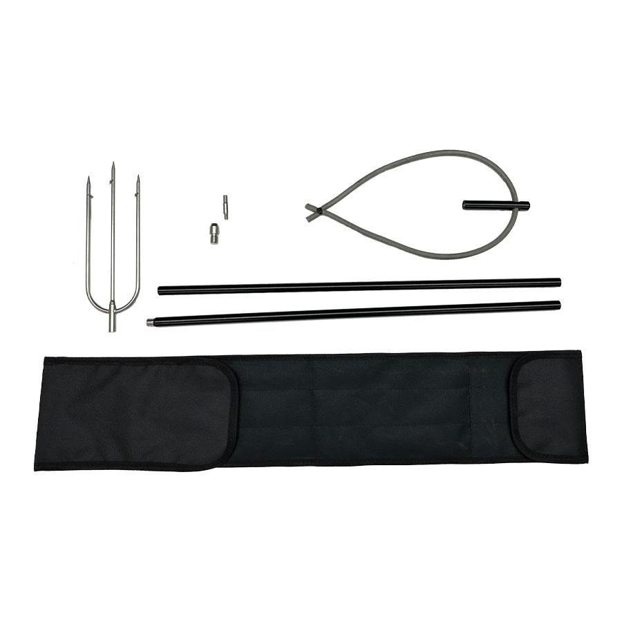 В комплекте STD v.2 два колена, ручка с резиновой петлёй, переходник для наконечников с резьбой М7х1 и трезубый STD наконечник. Упакован в удобный чехол для транспортировки и хранения. STD v.2: Облегченный чехол 77х15х3 см Колено слинга — 58,5 см Ручка — 9,5 см Резина d 0,8 см 76 см Трезуб большой 25 см Переходник разборный М12 — М7