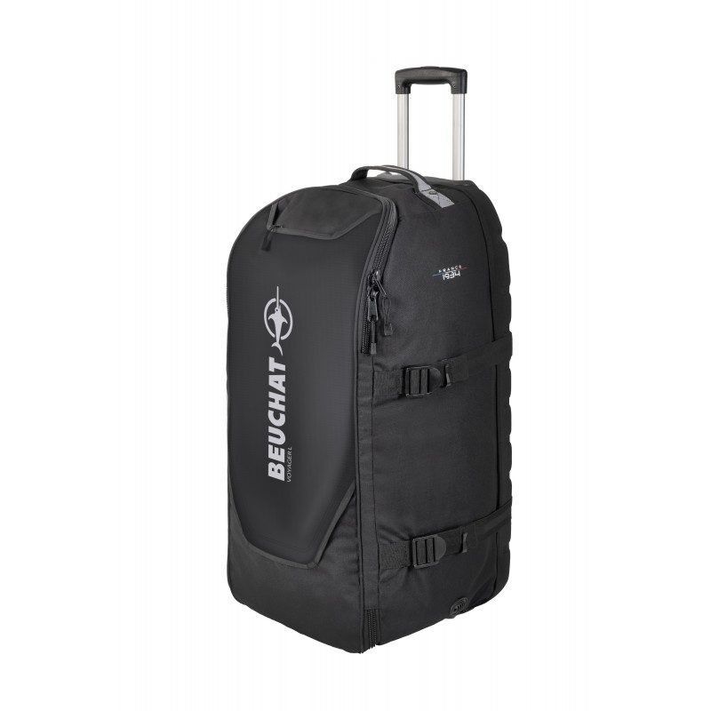 Универсальная сумка на колесах для водных приключений. Объем: 90 лРазмеры: 75x35x36 смВес: 2,9 кг  Материал: рипстоп, нейлон / ПВХ 600 ден и 1000 ден Рипстоп — легкий и чрезвычайно прочный материал, сверху покрыт полиуретаном, чтобы сделать его водонепроницаемым. Beuchat Shell Case: полужесткая задняя часть из термоформованного EVA, которая сочетает в себе легкость с дополнительной защитой содержимого сумки во время транспортировки или погрузочно-разгрузочных работ, а также при свертывании сумки. Система Molle для крепления внешних аксессуаровВнутренний сетчатый боковой карманТелескопическая ручкаЛюверсы для навесного замка
