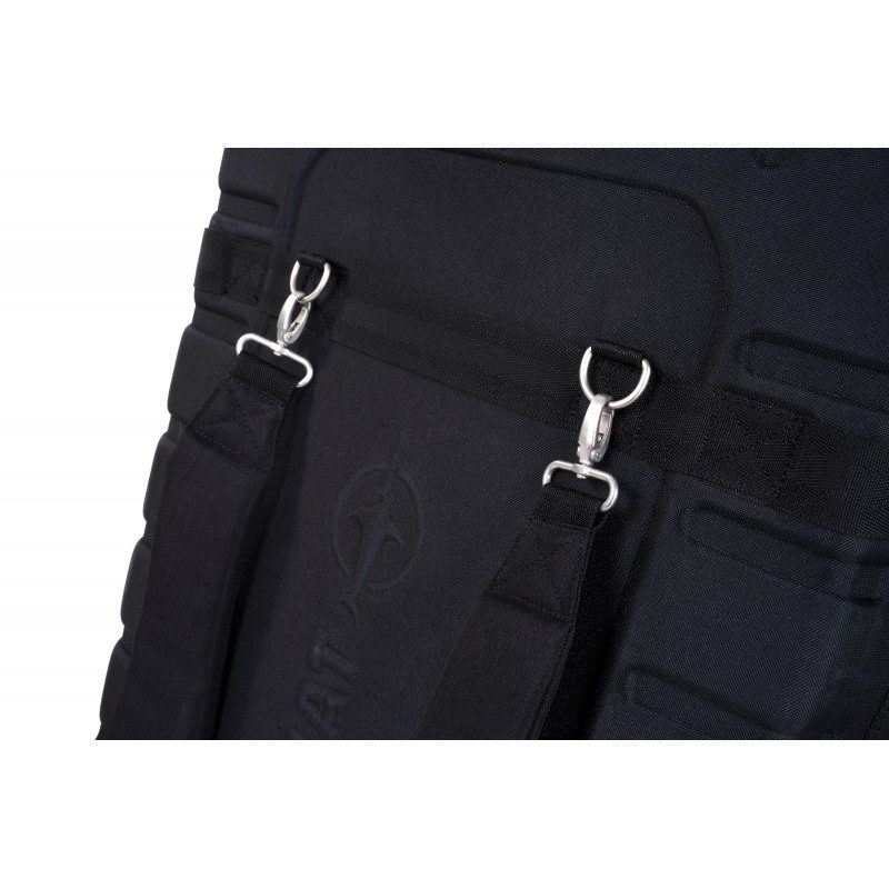 Вместительная сумка на колесах с двумя отделениями и регулируемой телескопической ручкой Объем: 130 лРазмеры: 75x47x39 смВес: 3,6 кг Материал: рипстоп, нейлон / ПВХ 600 ден и 1000 ден Рипстоп — легкий и чрезвычайно прочный материал, сверху покрыт полиуретаном, чтобы сделать его водонепроницаемым. Beuchat Shell Case: полужесткая задняя часть из термоформованного EVA, которая сочетает в себе легкость с дополнительной защитой содержимого сумки во время транспортировки или погрузочно-разгрузочных работ, а также при свертывании сумки. Система Molle для крепления внешних аксессуаровВнутренний сетчатый боковой карманДва отдельных больших внутренних отделенияЛямки рюкзакаТелескопическая ручкаЛюверсы для навесного замка
