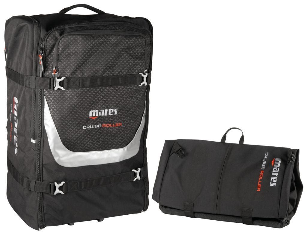 Сумка MARES CRUISE ROLLER безкаркасная и легко складывается до размеров бизнес-сумки менее чем за минуту. Размеры — 47 × 32 × 81 см Вес — 3кг Объем — 128л