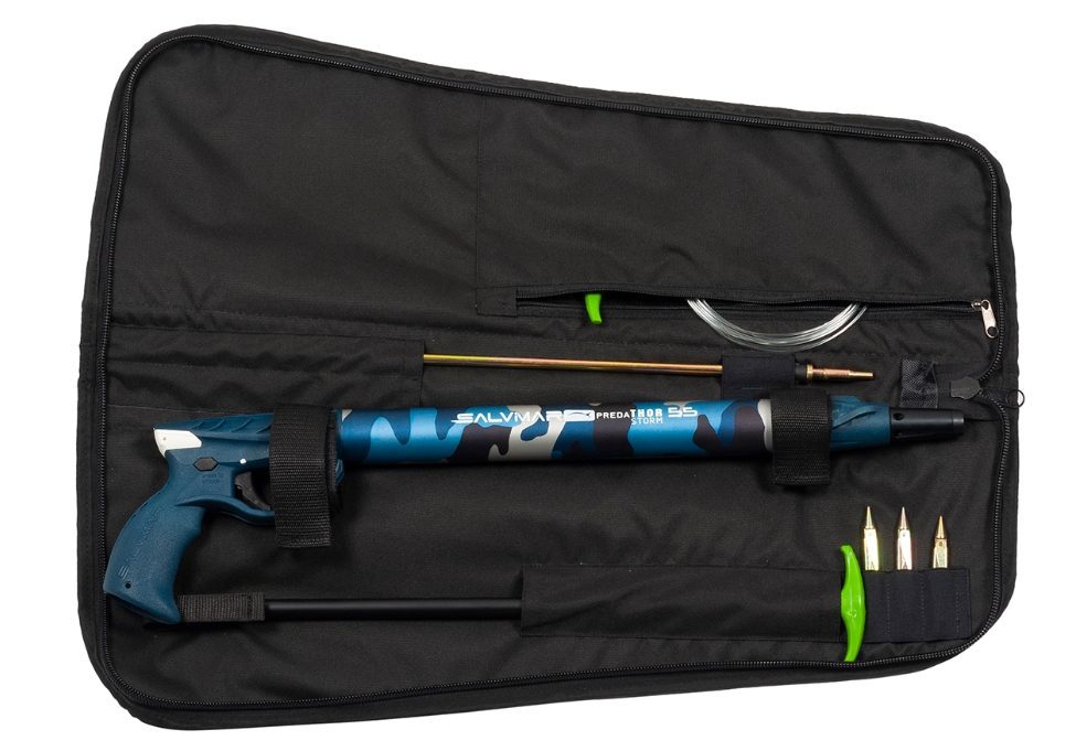 Чтобы ружье и все аксессуары были всегда в одном месте и не терялись рекомендуем Вам купить сумку для пневматического подводного ружья.Само ружье в сумке плотно держится специальными застежками на липучках.Сумка оснащена карманами под два запасных гарпуна,карманом под насос, специальными местами для 3-х запасных наконечников и большим карманом на молнии для аксессуаров.В сумке Ваше ружье всегда будет аккуратно уложено и за счет этого дольше прослужит.Длина сумки 50 см, 65 см, 85 см, ширина 23 см, высота 4-6см