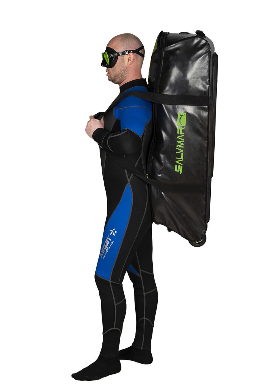 Большая вместительная сумка на колесах для снаряжения подводного охотника Salvimar ROLLER значительно облегчит Ваши путешествия со снаряжением как при перелете в другую страну на воздушном транспорте, так и при поездках на подводную охоту на автомобиле внутри страны. Часто бывают ситуации, когда нужно пройти от машины до воды метров 500 со снарягой и поверьте значительно проще сделать это когда у Вас сумка на колесах. Объем полезного пространства в сумке Salvimar ROLLER составляет 152 литра. Сумка вмещает один зимний комплект с неопреном 9 мм и дополнительными аксессуарами, такими как полотенец, вода для переодевания и т.п. Либо 2 пятимиллиметровых комплекта снаряжения. Габаритный размер: 100х40х30 см. Сумка оснащена: Двумя отдельным карманом под мелкие вещи. Двумя колесами увеличенного размера для повышения проходимости. Специальным бейджем для подписи данных владельца на случай утери. Двумя мощными ручками по торцам сумки для переноски тяжелой сумки вдвоем. Ручками – лямками, которые позволяют повесить сумку на плече. Жестким каркасом из кварц-винила. СДЕЛАНО В ИТАЛИИ!