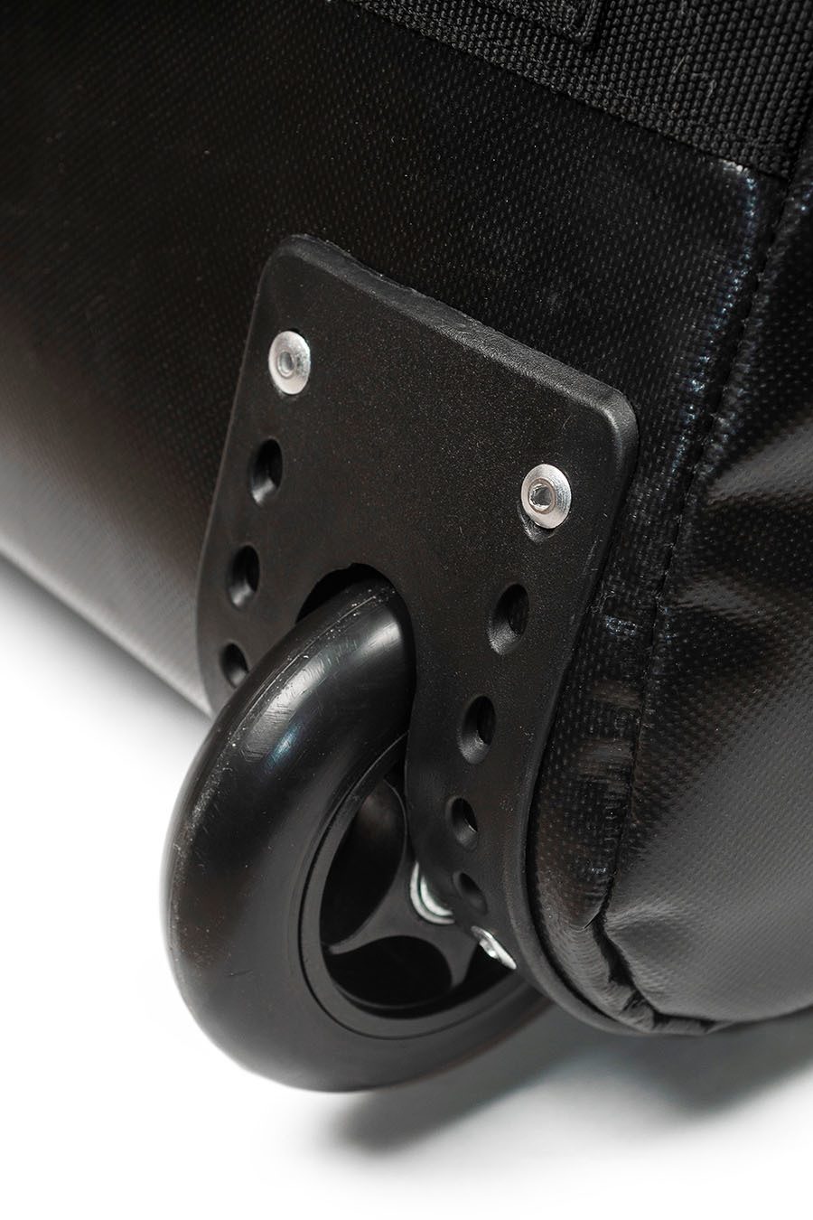 Большая вместительная сумка на колесах для снаряжения подводного охотника.