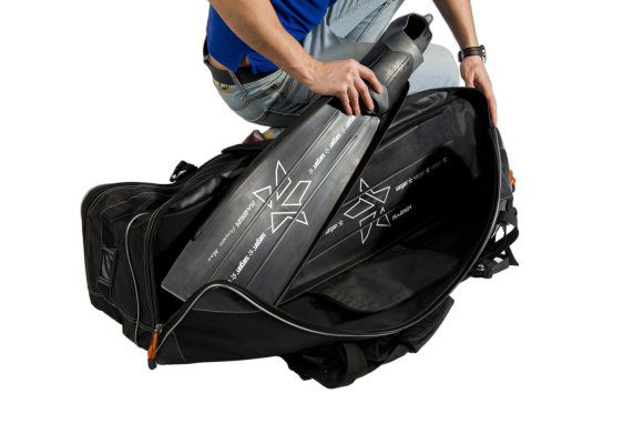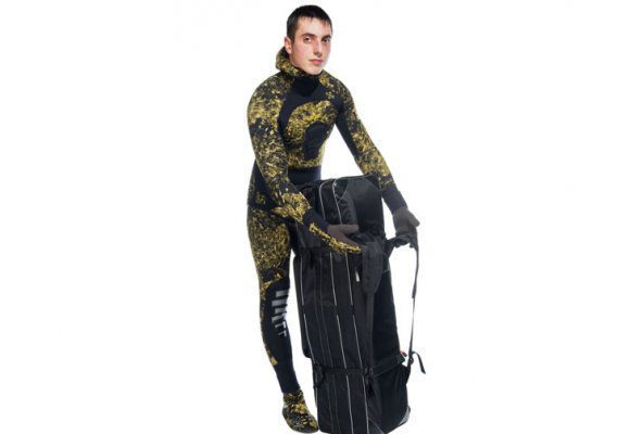 Стильная сумка подводного охотника, одна из самых удобных сумок для снаряжения. Главная конструктивная особенность – фиксация ласт на средней переборке, превращает ее в ребро жесткости всей сумки, а также исключает перемещение снаряжения внутри сумки во время транспортировки. Дополнительная жесткость задается наружными стяжками с замками «фастекс». Крупноформатные молнии повышенной надежности, легко открываются даже на самом лютом морозе. Кроме обычных ручек, предусмотрена полноценная рюкзачная подвеска, что значительно облегчает переноску полностью загруженной сумки, как по времени, так и по пересеченной местности. Характеристики:Материал: поликордура Oxford 1680DРазмеры 30х30х100 см.Объем 90 литровВес 0,8 кг.Грузоподъемность – 30 кг.Отсек для длинных охотничьих ласт, маски, трубки, гидрокостюма.Отсек для пневматических ружей длиной до 100 см, гарпунов, насоса и сменных наконечников.Выпускается с 1999 года.Разумная грузоподъемность – 30 кг. Не кладите в сумку грузовой пояс.