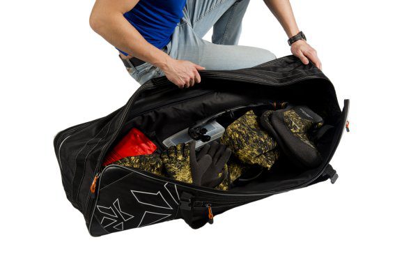 Стильная сумка подводного охотника, одна из самых удобных сумок для снаряжения. Главная конструктивная особенность – фиксация ласт на средней переборке, превращает ее в ребро жесткости всей сумки, а также исключает перемещение снаряжения внутри сумки во время транспортировки. Дополнительная жесткость задается наружными стяжками с замками «фастекс». Крупноформатные молнии повышенной надежности, легко открываются даже на самом лютом морозе.
