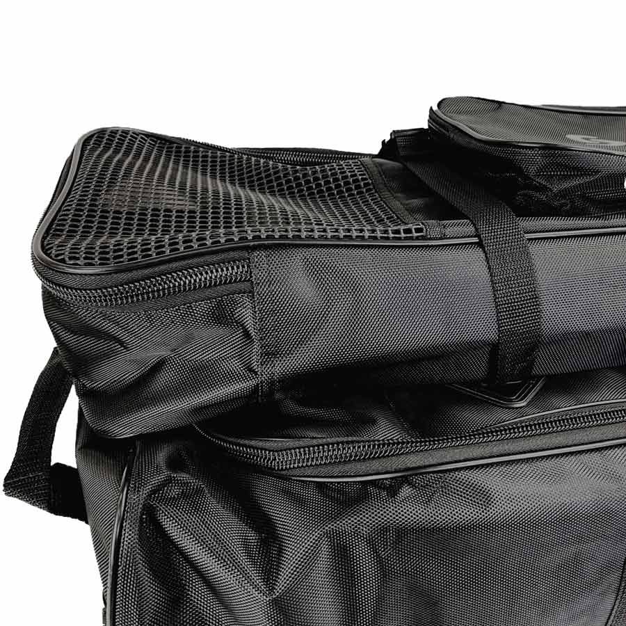Cумка состоит из двух сумок-модулей, которые могут эксплуатироваться по отдельности.Основной модуль – это большая сумка, при желании вмещающая несколько полных комплекта снаряжения. Модуль имеет одно большое отделение и фронтальный карман с внешней стороны, закрывающийся на мощную «молнию».На торцах сумки расположены ручки для переноса сумки «вдвоём» или для удобной установки, например, в багажник машины и т.п. Для переноски на плече, на основных ручках расположена накладка-замок на ленте «велкро». На клапане сумки расположены две пришивные направляющие со стропой, с помощью которых к сумке пристёгивается комплект №1.Габариты: 100 Х 33 Х 30 см. Объём: 99 л. Вес: 1,8 кг. Грузоподъемность: тестировано 20 кг. Заявлено 15 кг.Пристёгивающийся модуль – сумка, для так называемого комплекта №1 ( длинные ласты, маска и трубка), хотя в неё без труда уместится еще не толстый гидрокостюм, полотенце и другие мелочи.Сумка состоит из основного отделения и внешнего объёмного кармана.Сумка имеет удобную ручку для переноски «отдельно» в руке, а так же отстёгивающуюся, на карабинах, плечевую лямку и бирку с личными данными. На нижнем торце имеется пришивная антипиллинговая ПВХ накладка.Габариты: основное отделение — 100 X 23 Х 13 см., карман- 50 Х 18 Х 6 см Объём: основное отделение — 30 л., карман — 5,5 л. Вес: 0,7 кг. Грузоподъёмность: тестировано 8 кг. Заявлено 6 кг.Все швы выполнены двойной строчкой с применением нити повышенной прочности TYTAN. Также в изделии применена стропа из полиамидных волокон и мощная застежка. Сумка изготовлена из прочнейшего материала PolyCordura.ВНИМАНИЕ!!! Грузовые системы, пояса, жилеты и т.п. в сумке НЕ ТРАНСПОРТИРОВАТЬ! Для транспортировки грузовых систем использовать специальную сумку для грузов!!