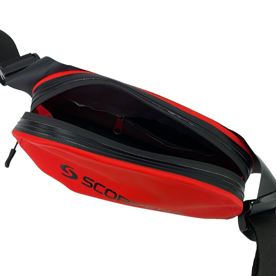 Поясная водозащитная сумочка Scorpena, красн. – незаменимая вещь как в городе, так и за его пределами. Она предназначена для сохранения ваших вещей во время дождя или при попадании на неё воды (брызг) во время перемещений на плавсредствах или сплаве по рекам, а также при переправах через водные преграды. С таким же успехом эта сумочка защитит своё содержимое от пыли, песка, снега и грязи, что позволит сохранить, например оптические приборы (бинокль или цифровой фотоаппарат) или средства связи/навигации. В неё можно спрятать небольшую аптечку, рем.комлект, ключи, бумажник, документы.  А уж для поездок по городу на самокате, велосипеде или скутере/мотоцикле это вообще незаменимая вещь!То есть поясная водозащитная сумочка Scorpena придётся как нельзя кстати при повседневной жизни в период непогоды, так и при походе на пляж во время отдыха, или при сплаве и других видах активного отдыха.Для удобства организации хранения, внутри основного отделения имеется дополнительный небольшой карман на молнии.Защита от попадания внутрь воды обеспечивается специальной застёжкой-молнией, расположенной по верхней части сумочки. Эта молния не является герметичной, но кратковременно сдерживает бÓльшую часть воды от проникновения. Степень защиты можно повысить регулярно обрабатывая густой силиконовой смазкой обе половинки молнии по всей длине. Для этой же цели подходят специальные восковые смазочные карандаши для гермомолний.Для удобства закрепления сумочки на теле она имеет мягкую, но крепкую 40мм стропу с двумя регулировочными пряжками. Наличие именно двух пряжек даёт возможность расположить сумку как по центру, так и комфортно сместить её на любой бок, что особенно оценят те пользователи, которым приходится много сидеть за рулём авто, мото и велотранспорта или в плавсредстве (катере, гидроцикле, лодке, рафте, байдарке и т.п.). С помощью этих быстрорегулируемых пряжек можно также легко настроить длину ремня в широком диапазоне. Что позволяет носить такую сумку не только на поясе, но и на груди – по диагонали, что становится всё более популярно в последнее время.Использовать поясную водозащитную сумочку Scorpena можно при Температуре воздуха от -15 до +50°С.Не погружайте её полностью под воду. Не является спасательным или плавательным средством!Сделано в центре России, на одном из самых опытных производств по выпуску гермоупаковки для нужд профессионалов.