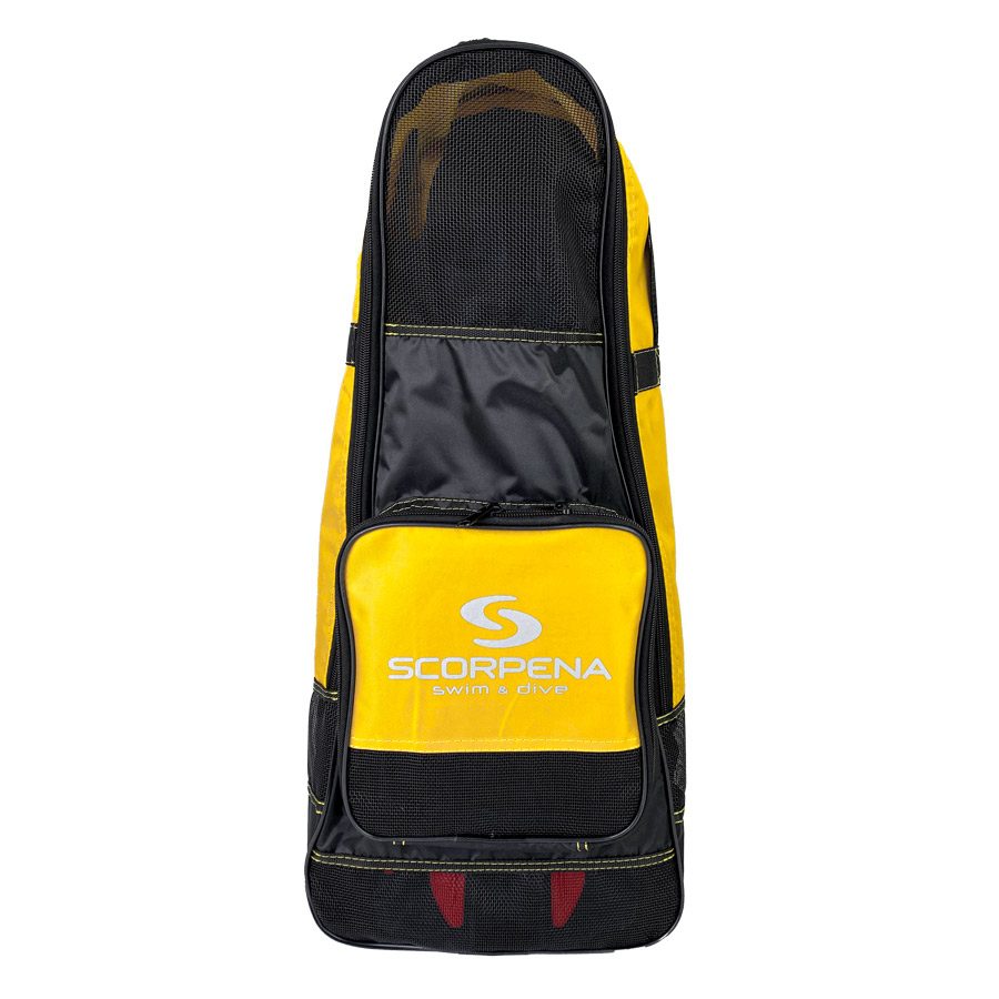 Основное предназначение сумки Scorpena Swim Light — транспортировать комплект для плавания на пляж и обратно.В основное отделение сумки свободно помещается пара ласт (общей длиной до 62 см.), комплект маски и трубки, тонкий гидрокостюм или купальник и небольшое полотенце. Сумка сделана расширяющейся к верху, что бы в неё смогли легко уместиться ласты большого размера с широкой калошей.Снаружи сумки имеется накладной карман для небольших аксессуаров или ключей и документов.Сетчатые вставки позволяют активно вентилироваться содержимому сумки. Сумка имеет усиленные молнии с двумя бегунками на центральном отделении.Сверху расположена ручка для переноски, а на спинке присутствует регулируемый по длине ремень.Размеры:Длина сумки: 62 см,Ширина днища 28 см,Ширина в верхней части: 17 см,Глубина днища: 8 см,Глубина верхней части: 18 см.Накладной карман: 20 х 22 см, глубина 5 см.