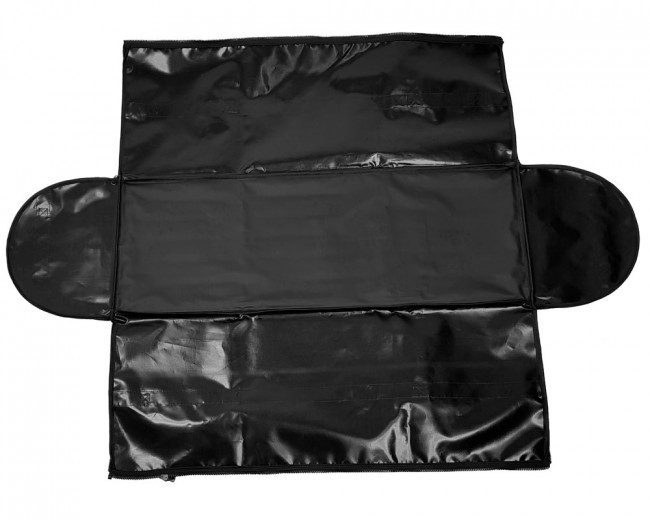 Вместительная сумка для полного комплекта снаряжения подводного охотника. Её основная особенность в том, что боковые грани могут быть полностью расстёгнуты до дна и после этого сумка превращается в удобный коврик, стоя на котором, можно комфортно переодеться. Для большей сохранности поклажи дно этой сумки выполнено двойным, с промежуточным слоем упругого материала. Это заодно предотвращает переохлаждение ступней ног подводного охотника при переодевании на берегу в прохладную погоду. Также можно этот получившийся коврик использовать как чистый стол для обслуживания снаряжения: подготовки ружья к охоте, замене комплектующих вышедших из строя или просто подклеить надорванный гидрокостюм. А ещё эта сумка хороша для компактного хранения: после полного расстёгивания её можно сложить в плоский конверт, который не занимает много места в кладовке. Водонепроницаемое внешнее покрытие защитит салон или багажник машины от мокрого или грязного снаряжения подводного охотника. Длинные охотничьи ласты, вставленные вдоль длинных сторон сумки, послужат ребрами жесткости. Сумка имеет длинные боковые ручки, что позволяет кратковременно переносить её на спине как рюкзак. Также в комплекте идёт регулируемый по длине плечевой ремень с двумя карабинами для быстрого его пристёгивания к диагональным полукольцам сумки. Кроме того, эту сумку удобно передавать на лодку с берега или причала благодаря ручкам на торцах сумки. Настоятельно не рекомендуем переносить в сумке груза, грузовые системы, грузовые пояса, жилеты с грузами и т.п.! Для этих целей нужно использовать специальную сумку для грузов!!! Размер: Д 100 х Ш 36 х В 28 см Вес: 1,46 кг
