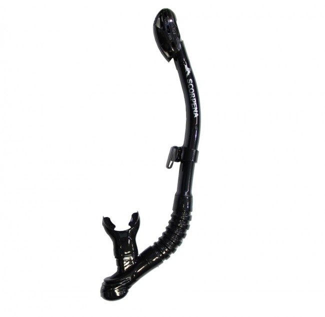 Трубка сухого типа SCORPENA J – предназначена для дыхания при длительном плавании по поверхности. Она будет высоко оценена подводными охотниками, дайверами, а также теми кто занимается снорклингом. Трубка по форме напоминает латинскую букву J и поэтому имеет соответствующее название. Одной из её ключевых особенностей является то, что в отличии от большинства трубок с гофрированными вставками, эта модель имеет отформованную изогнутую форму что позволяет удерживать её силиконовый загубник во рту без приложения дополнительных усилий! Это становится тем более важнее чем более длительна ваша подводная охота по времени нахождения в воде. Кроме того трубка Scorpena J оснащена двумя клапанами: нижним — перепускным тарельчатым и верхним — запорным клапаном поплавкового типа. Верхний клапан препятствует попаданию воды в трубку при погружении под воду. Именно поэтому такой тип трубки называется «»сухим»». Форма насадки и расположение воздушных каналов также существенно уменьшает количество попадающей внутрь трубки воды при захлёстывании её волной. А нижний клапан является «»второй линией обороны»», то есть он необходим для того, чтобы проще и тише удалять всё таки попавшую в трубку воду. Клапан защищён прочным внешним кожухом для предотвращения его механических повреждений. Мягкий силиконовый загубник сделан изогнутым для более анатомичного и комфортного расположения трубки. Кроме того, загубник выполнен съёмным чтобы при необходимости его можно было легко заменить на новый. Так же просто его можно повернуть в другую сторону — для присоединения трубки с другой стороны лица. Корпус трубки изготовлен овальной формы сечения что уменьшает лобовое сопротивление трубки при неизменно большой пропускной способности. Быстроразъёмное крепление для маски легко перемещается по корпусу трубки и поворачивается вокруг своей оси. Такое крепление, несмотря на свою простоту, — простое, надежное и весьма удобно в использовании.