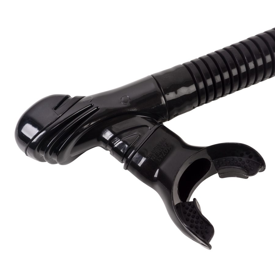 Scorpena K2 – трубка оснащённая нижним дренажным и верхним «»сухим»» клапаном. Прекрасно подойдёт для занятий сноркелингом (плаванием по поверхности), дайвинга и любительской подводной охоты в чистой воде. Благодаря высокой гибкости гофрированной вставки, загубник не мешается в те моменты когда вы не пользуетесь трубкой.Поскольку в конструкции предусмотрены два клапана — нижний и верхний, — они значительно ограничивают либо полностью перекрывают доступ воды в полость трубки при нырянии. В случае если такое всё же произошло, её можно быстро удалить через нижний клапан. Корпус нижнего клапана имеет плавные обводы, что снижает возможность её зацепления при встрече с подводной растительностью, а также улучшает обтекаемость при высоких скоростях.Гибкая нижняя часть выполнена из эластичного силикона — это позволяет быстро переключаться с трубки на дыхательный автомат. Гибкая гофрированная нижняя часть трубки снижает усталость и нагрузку на челюсти при удержании трубки во рту.Анатомический загубник, изготовленный из высококачественного мягкого силикона, является съёмным, то есть его можно заменить при необходимости. Загубник не мешает, когда трубка не используется — отличный вариант для аквалангистов. Особая конструкция углового загубника способствующая уменьшению усталости на челюсти.Крепление трубки Scorpena K2 состоит из двух отдельных частей. Первая часть надета на трубку, вторая крепиться на ремешок маски. Перед погружением обе части соединяются буквально одним движением. В собранном виде крепление может перемещаться по высоте трубке и регулироваться по углу наклона по отношению к маске. При необходимости трубка может быть отсоединена от маски после нажатия специального фиксатора.