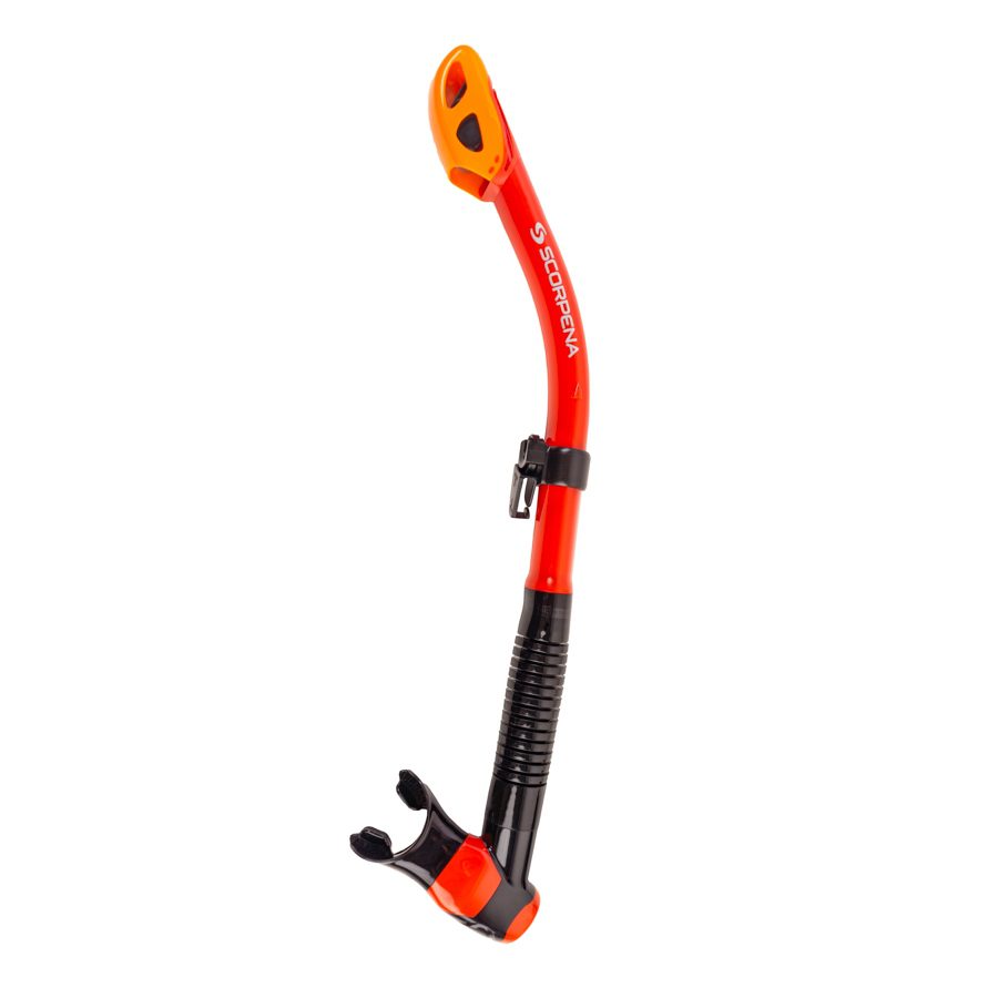 Scorpena K4 – ещё одна трубка в нашей коллекции, оснащённая нижним дренажным и верхним «»сухим»» клапаном. Эта трубка элитного класса встречается в коллекциях именитых европейских марок. Она прекрасно подойдёт для занятий сноркелингом (плаванием по поверхности), дайвингом и любительской подводной охотой. Благодаря высокой гибкости и форме гофрированной вставки, загубник не мешается в те моменты, когда вы не пользуетесь трубкой. Другими словами – Вам достаточно выпустить загубник трубки изо рта и она автоматически отходит от лица в сторону.Поскольку в конструкции предусмотрены два клапана — нижний и верхний, — они значительно ограничивают либо полностью перекрывают доступ воды в полость трубки при нырянии. В случае если такое всё же произошло, её можно быстро удалить через нижний клапан всплыв полностью на поверхность. Или резко выдохнуть в трубку и вода выйдет через верхний клапан.Корпус нижнего клапана имеет увеличенные размеры, что позволило установить тарельчатый перепускной клапан высокой производительности. Это позволяет быстро и эффективно избавляться от остатков воды в трубке, что делает дыхание после продувки практически бесшумным. Сам клапан имеет нижнюю защитную решётку, которая препятствует попаданию в клапанный механизм посторонних предметов.Гибкая гофрированная нижняя часть трубки снижает усталость и нагрузку на челюсти при удержании трубки во рту. А прямая форма этой гофрированной вставки позволяет быстро переключаться с трубки на дыхательный автомат во время SCUBA-дайвинга.Анатомический загубник, изготовленный из высококачественного мягкого силикона, является съёмным, то есть его можно заменить при необходимости. Загубник не мешает, когда трубка не используется — отличный вариант для аквалангистов. Особая конструкция углового загубника способствует уменьшению усталости на челюсти.Крепление трубки Scorpena K4 состоит из двух отдельных частей. Первая часть надета на трубку, вторая крепиться на ремешок маски. Перед погружением обе части соединяются буквально одним движением. В собранном виде крепление может перемещаться по высоте трубке и регулироваться по углу наклона по отношению к маске. При необходимости трубка может быть отсоединена от маски после нажатия специального фиксатора.