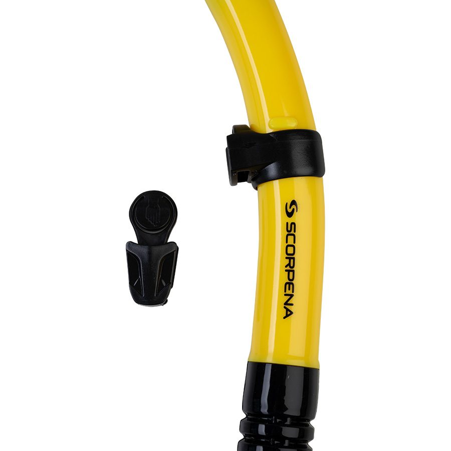 Scorpena K5 –трубка, оснащённая нижним дренажным и верхним «»сухим»» клапаном. Она прекрасно подойдёт для занятий сноркелингом (плаванием по поверхности), дайвингом и подводной охотой. Верхний клапан препятствует попаданию воды при погружении, благодаря форме насадки и расположению воздушных каналов. Нижний клапан необходим для того, чтобы легче, быстрее и тише удалять воду, если она всё-таки попала в трубку. Клапан защищён прочным внешним кожухом для предотвращения механических повреждений, а снизу имеет отверстия оптимального диаметра для быстрого выпуска воды.Гибкая гофрированная нижняя часть трубки снижает усталость и нагрузку на челюсти при удержании трубки во рту. А прямая форма этой вставки позволяет быстро переключаться с трубки на дыхательный автомат во время SCUBA-дайвинга. Благодаря высокой гибкости и форме гофрированной вставки, загубник не мешает, когда вы не пользуетесь трубкой, т.е., выпустив загубник, она автоматически отходит в сторону от лица.Мягкий силиконовый загубник съёмный, чтобы при необходимости его можно было легко заменить.Крепление трубки Scorpena K5 состоит из двух частей: первая надета на трубку, вторая крепится на ремешок маски. Перед погружением обе части соединяются буквально одним движением. В собранном виде крепление может перемещаться по высоте трубки и регулироваться по углу наклона к маске. Трубка Scorpena K5 представлена в двух цветах: спокойном синем и ярко–жёлтом, чтобы каждый смог выбрать наиболее подходящий вариант цветового сочетания с остальными элементами экипировки.
