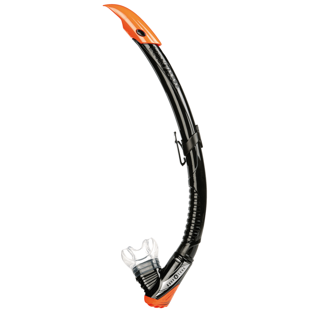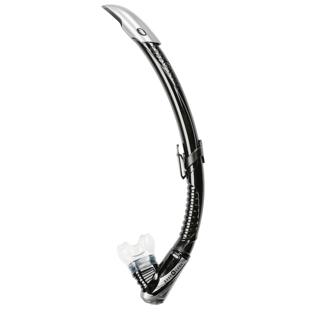 Трубка с клапаном выдоха. — Удобное и надежное крепление к ремешку маски — Гибкая гофрированная вставка — Подвижный относительно оси трубки нижний сегмент — Дренажная камера эллиптической формы — Анатомический силиконовый загубник