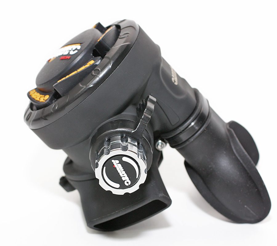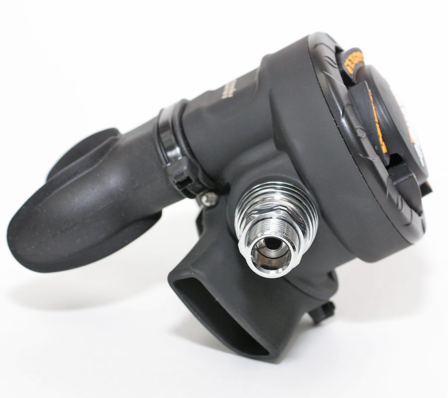 Пневматически сбалансированная вторая ступень — Система Вентури позволяет управлять воздушным потоком — Эргономичный винт регулировки усилия на вдох — Теплообменник для обогрева проходящего воздуха — Подходит для использования в холодной воде — Ортодонтический загубник снимает нагрузку с челюсти — Производительность 1800 л/мин — Вес 266 грамма — Шланг длиной 70 см