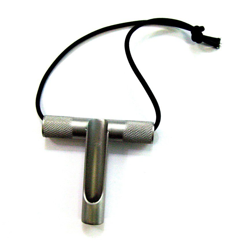 Это несложное приспособление предназначено для облегчения заряжания подводных пневматических ружей. Т-образная форма этой заряжалки существенно снижает вероятность травмирования кистей рук подводного охотника при введении гарпуна в ствол ружья. Это обеспечивается тем, что при использовании этой заряжалки рука подводного охотника находится ниже острия наконечника, а при снимании её с гарпуна рука не пересекается с траекторией выстрела. Чтобы наконечник гарпуна не тупился при зарядке, упираясь в металл, большинство подводных охотников укладывают на дно упругий материал, например стирательную резинку. Для крепления на запястье охотника заряжалка снабжена прочным, но эластичным шнуром. Внешний диаметр трубки для наконечника — 14 мм, длина — 65 мм. Ширина рукоятки — 70 мм.