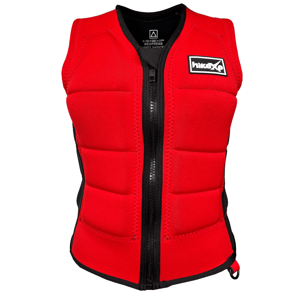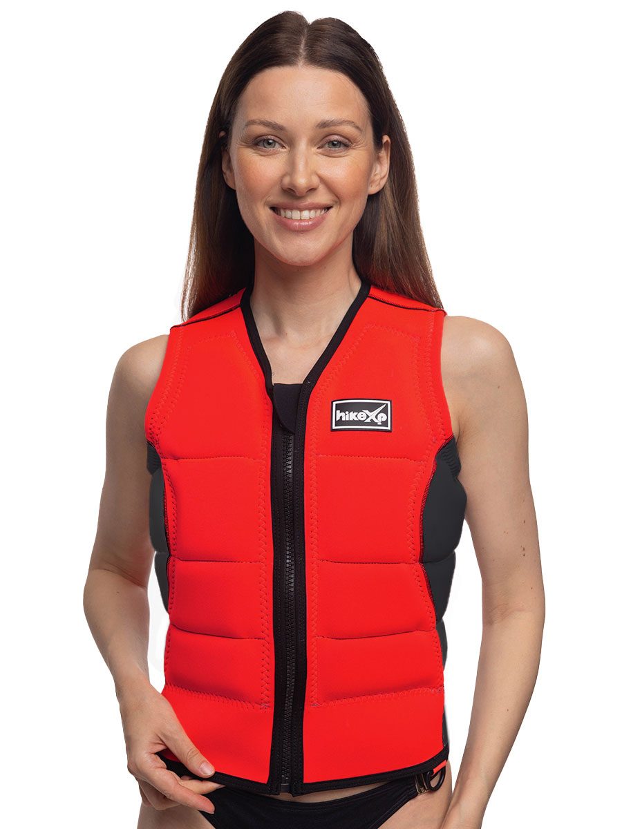 Женский спасательный антишоковый неопреновый жилет для сёрфинга, вейкборда, гидроцикла и подобных экстремальных видов водного спорта hikeXp Neoprene Anti Shock. Мы создали его полностью с нуля, используя тянущийся неопрен и самую современную мягкую пену толщиной 1,5 см. Благодаря правильному расположению блоков плавучести по всей поверхности и аммортизирующим свойствам неопрена, жилет распределяет ударные нагрузки по всему телу, обеспечивая защиту внутренних органов спортсмена при падении в воду на большой скорости. Мы не забыли про водомоторников — полукольцо для чеки крепко вшито в нижнюю правую часть жилета.