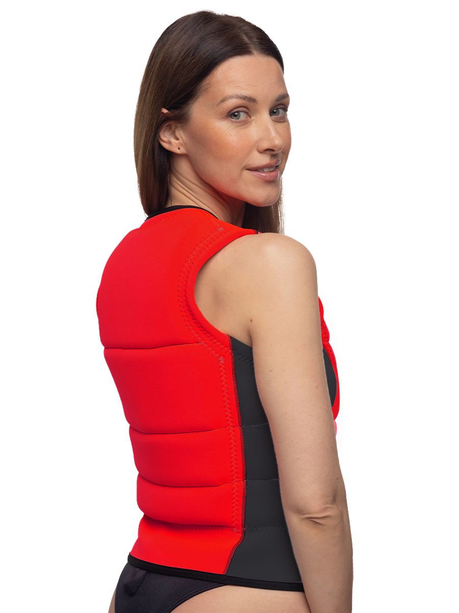 Благодаря правильному расположению блоков плавучести по всей поверхности и амортизирующим свойствам неопрена, жилет распределяет ударные нагрузки по всему телу, обеспечивая защиту внутренних органов спортсмена при падении в воду на большой скорости.