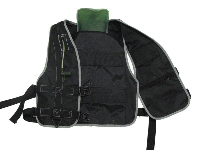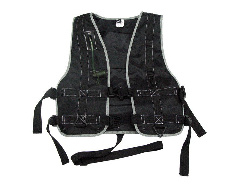 Уникальный грузовой жилет который позволяет подводному охотнику более равномерно распределить груза по телу. Отличительной особенностью этого грузового жилета является то, что он одновременно может служить и компенсатором плавучести. Это достигнуто установкой внутри жилета 3-х литровой камеры плавучести с оральной системой поддува.
