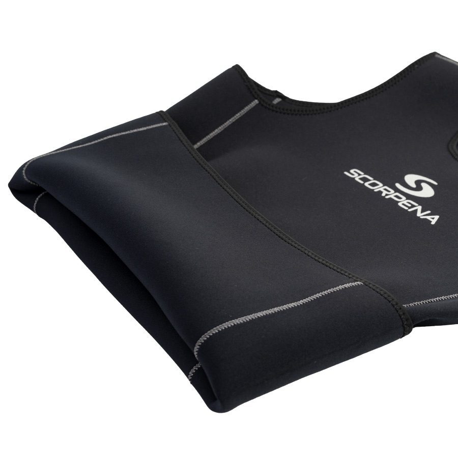 Основное предназначение неопренового жилета Scorpena Omega – препятствовать переохлаждению внутренних органов при нахождении как в воде, так и на поверхности или берегу/бортике бассейна.Эта жилетка изготовлена из теплоизолирующего неопрена с покрытием тканью с обеих сторон, общая толщина изделия 2,5 мм. Анатомический крой обеспечивает хорошую посадку по фигуре, а эластичный неопрен не стесняет движений.Но в отличии от большинства аналогичных жилетов, все швы Scorpena Omega сначала склеены встык неопреновым клеем, а затем прошиты так называемым «слепым» швом, при котором полукруглая игла скрепляет только текстильную подкладку с каждой стороны и не пробивает насквозь сам неопрен!Верхний и нижний края изделия усилены эластичной лентой для предотвращения повреждений при надевании/снимании.Сзади майка сделана более удлинённой, относительно передней части – для лучшей теплозащиты поясничной части спины.Неопреновый жилет Scorpena Omega весьма универсален и поэтому прекрасно подходит как самостоятельное изделие, так и в паре с одноимёнными шортами:- для большинства видов активного водного спорта и отдыха (виндсерфинг, кайтсерфинг, водные лыжи, вейкбординг, сапбординг, бодибординг, скимбординг, сноркелинг, рекреационный дайвинг, гидрофойлинг, рафтинг, каякинг, каное, байдарка), особенно это актуально при наличии брызг и ветра;- для прогулок и катания на моторных видах плавсредств: аквабайках/гидроциклах, глиссерах, скутерах, моторных SUP-бордах, флайбординге и т.п.;- в качестве гидромайки – для плавания и тренировок как в бассейне, так и на открытой воде;- для подводной охоты и ныряния для сбора морепродуктов в совсем тёплой воде;- в качестве поддевки под гидрокостюм для сноркелинга, дайвинга или подводной охоты в прохладной воде;Прекрасным и стильным дополнением неопренового жилета Scorpena Omega станут одноимённые неопреновые шорты Scorpena Omega, неопреновая бандана Scorpena, а также полуботики или неопреновые носки Scorpena.