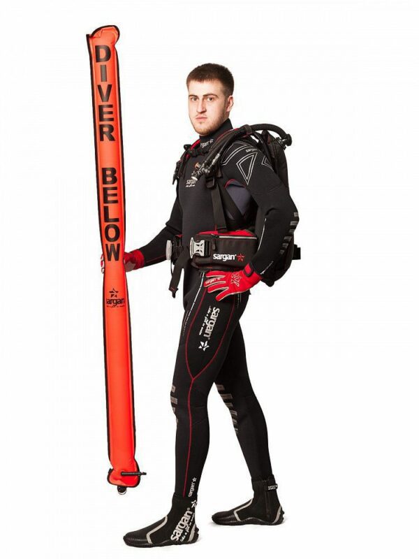 3 500 ₽Надувной маркерный буй замкнутого цикла с запирающим клапаном предназначен для обозначения места-нахождения дайвера при прохождении декомпрессионных процедур, остановок безопасности, а так же для дайвинга в условиях сильного течения и плотного трафика судоходства. Маркер-буй может быть универсальным, аварийным средством поддержания плавучести на поверхности воды и подачи сигналов в экстренных